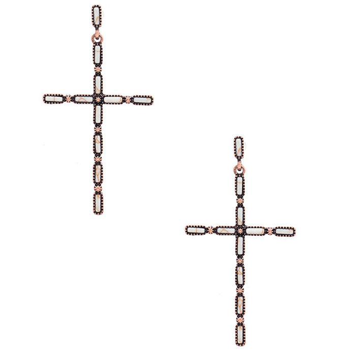 Boucle d'oreille en métal avec croix à motif multi-pierres