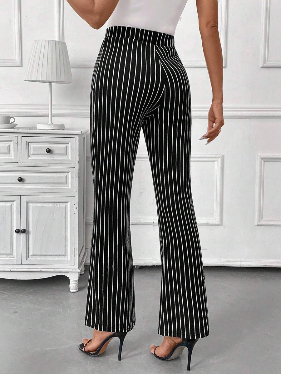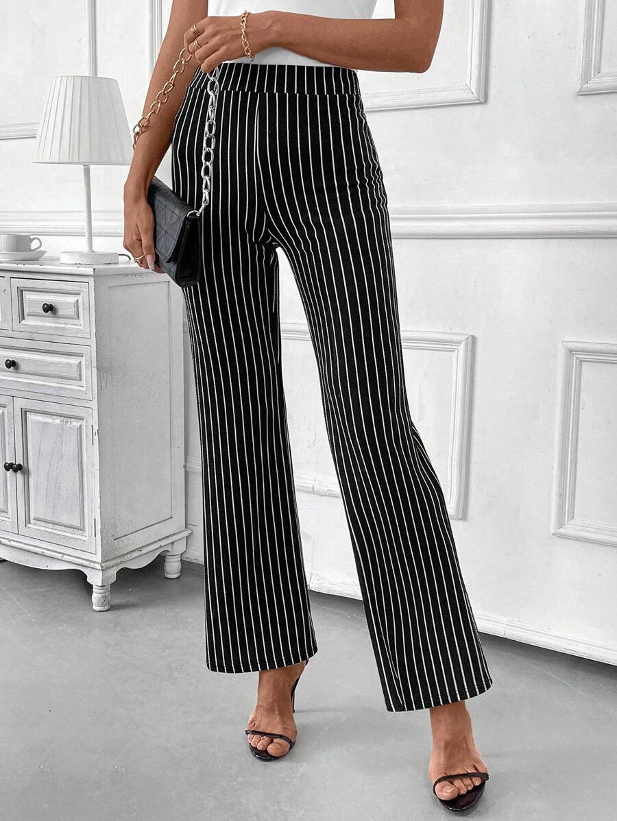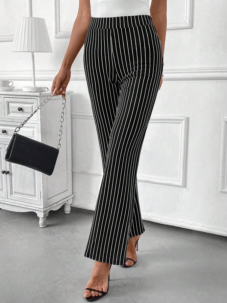 Clasi Women's High Waisted Striped Flare Elegant Office Wear Pants