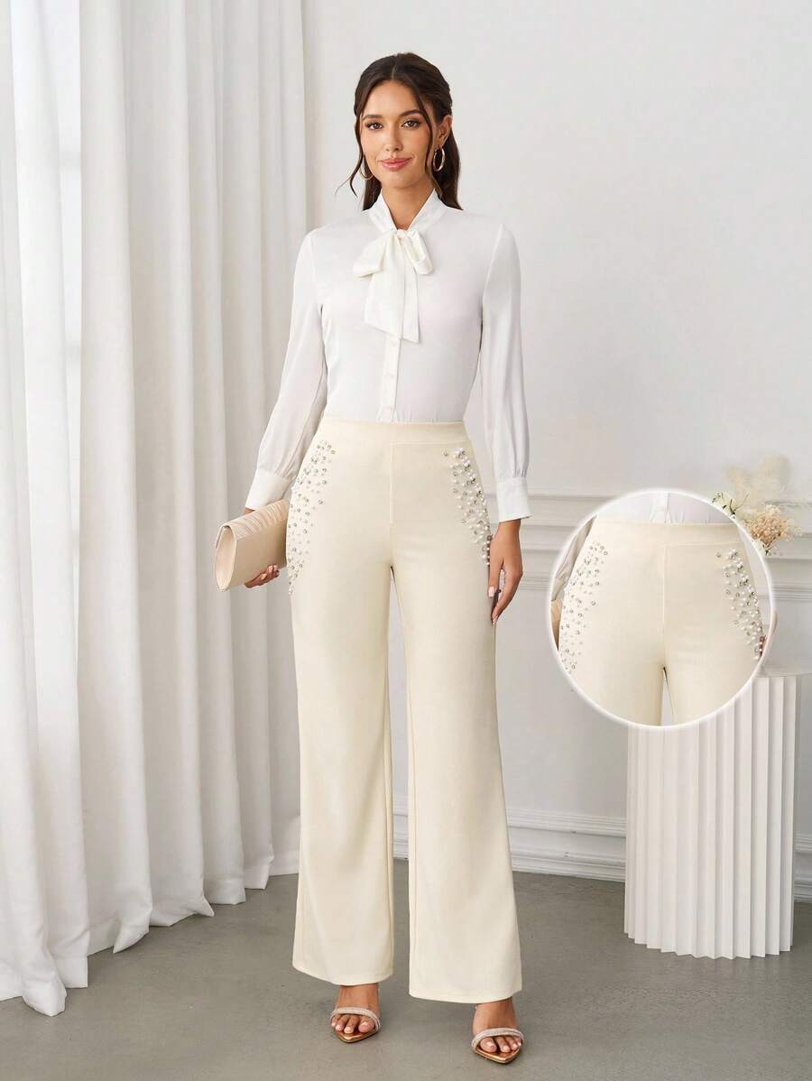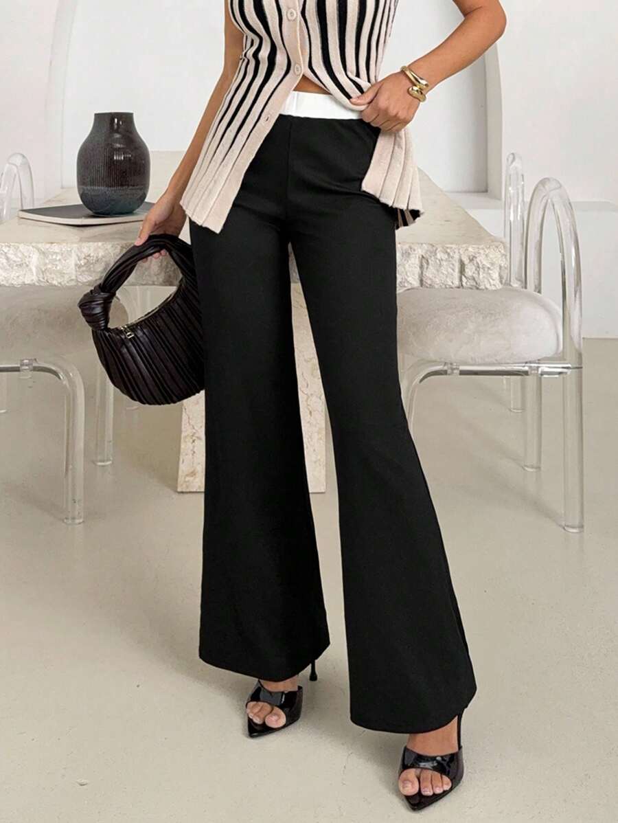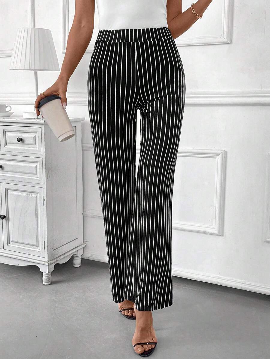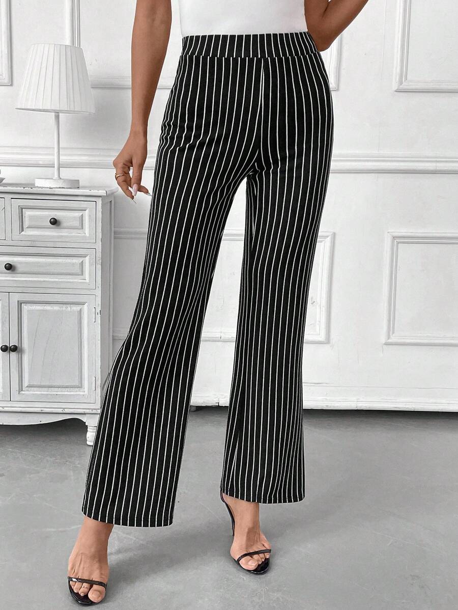 Clasi Women's High Waisted Striped Flare Elegant Office Wear Pants