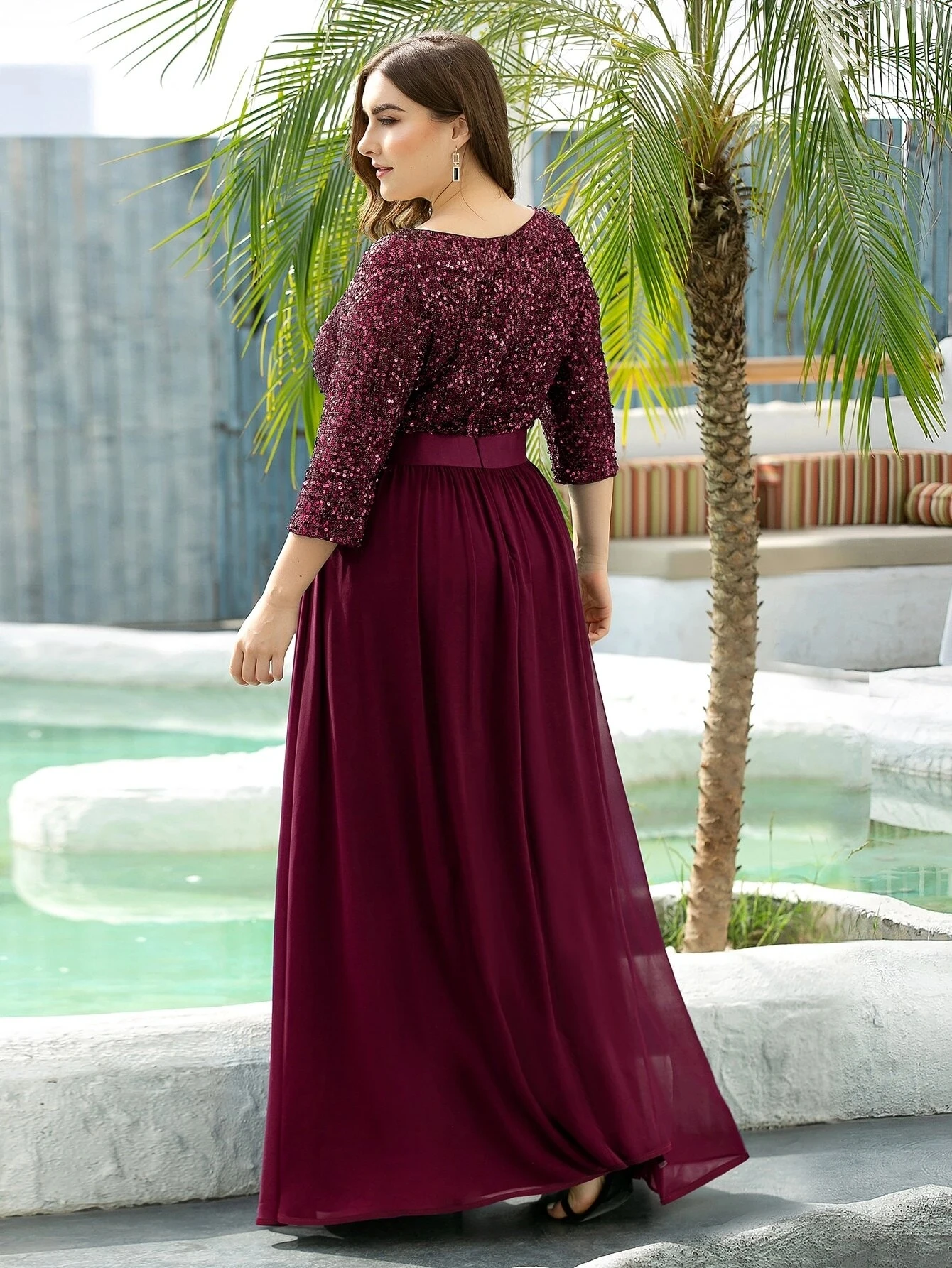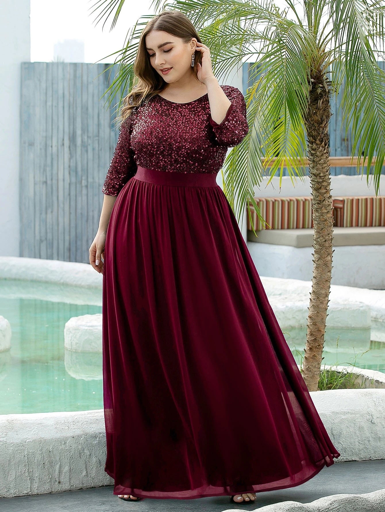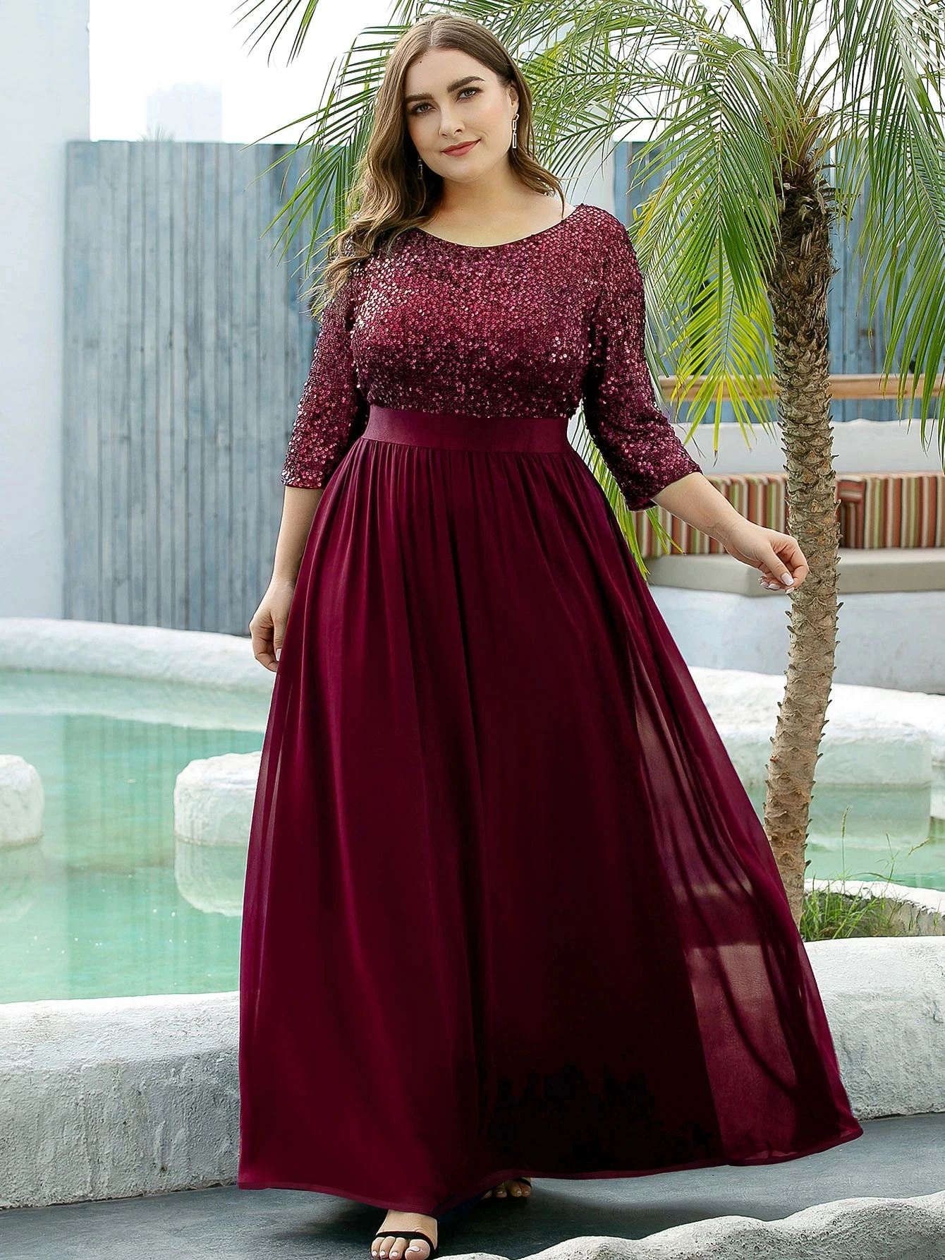 Robes élégantes Robes élégantes pour femmes de grande taille longue robe trapèze à manches longues et col rond 2023 Ever Pretty of Sequin Elegant Bridesmaid Women Dress