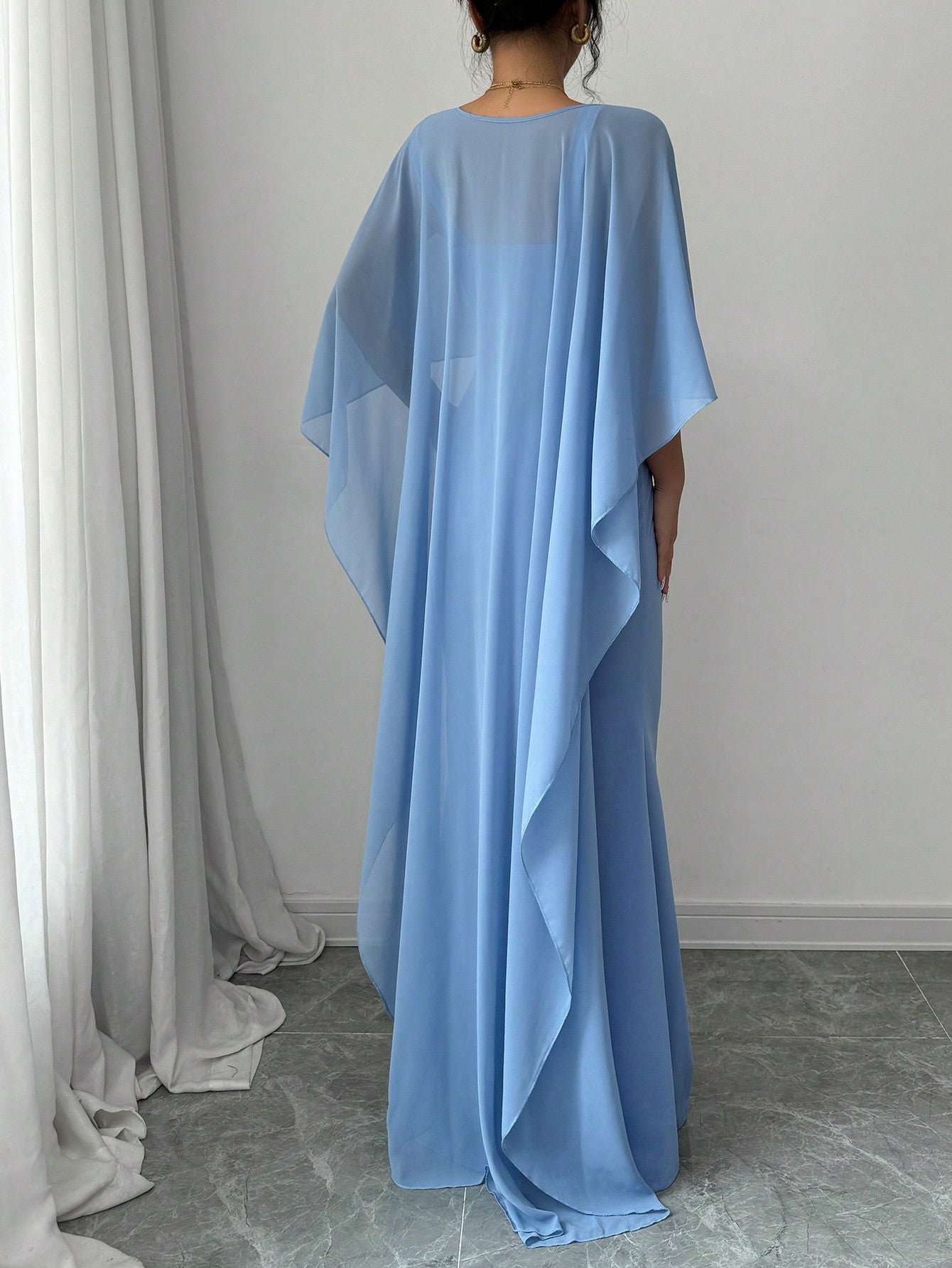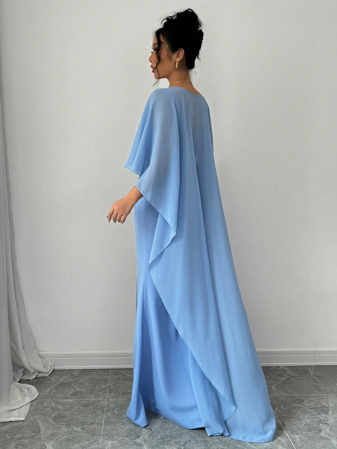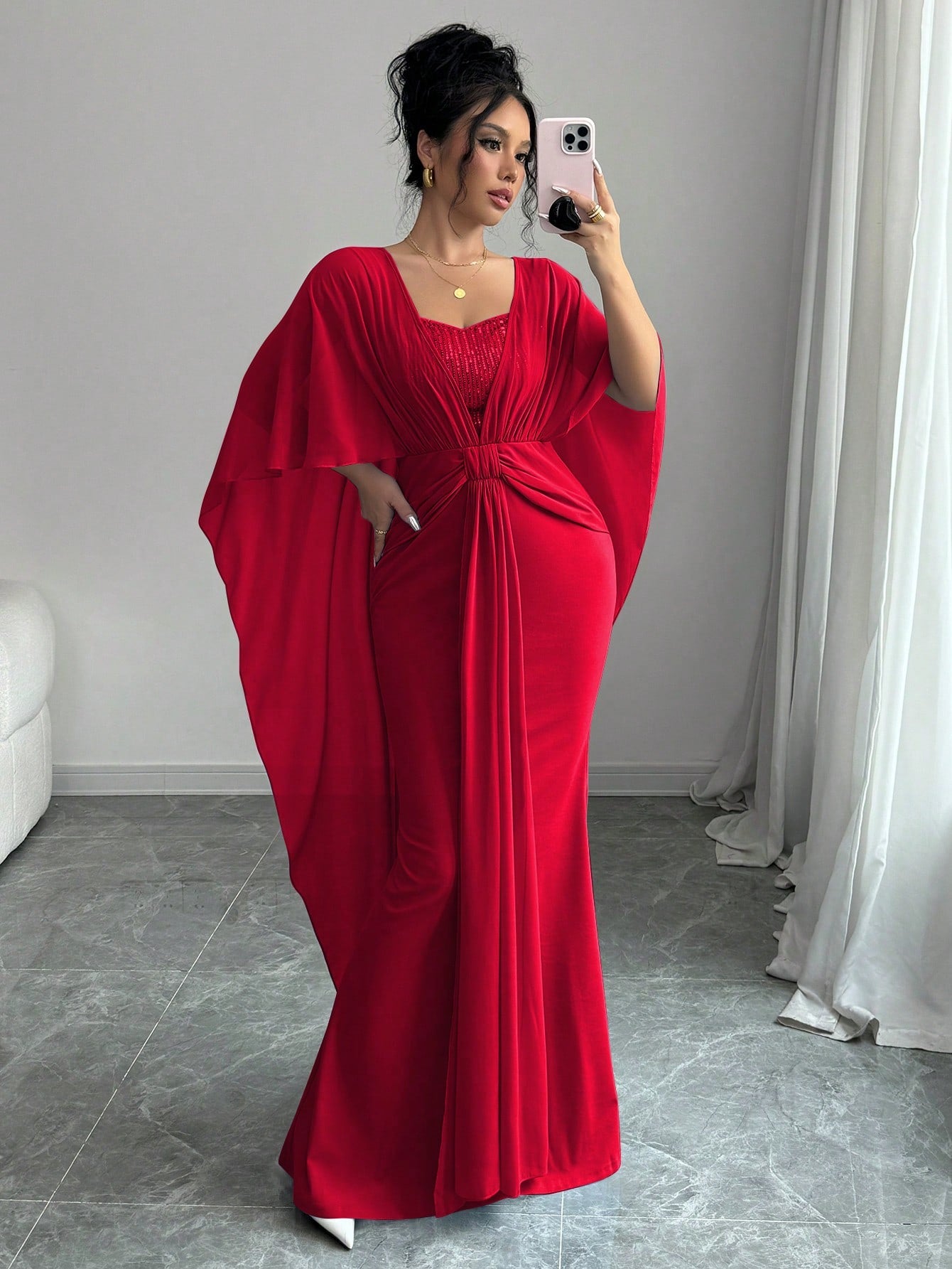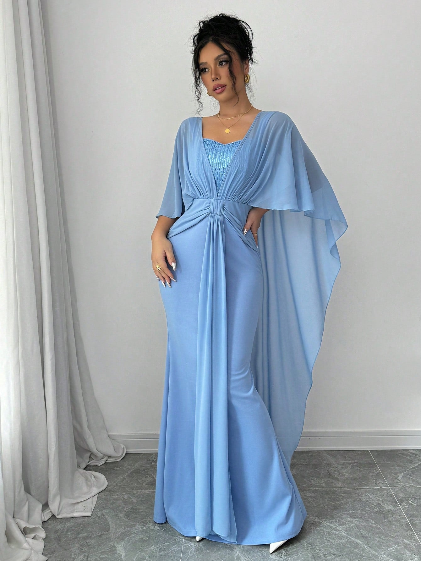 Elenzga Sequin Shawl Glitter Mermaid Hem Elegant Romantic Women Dress Maxi Women Outfit