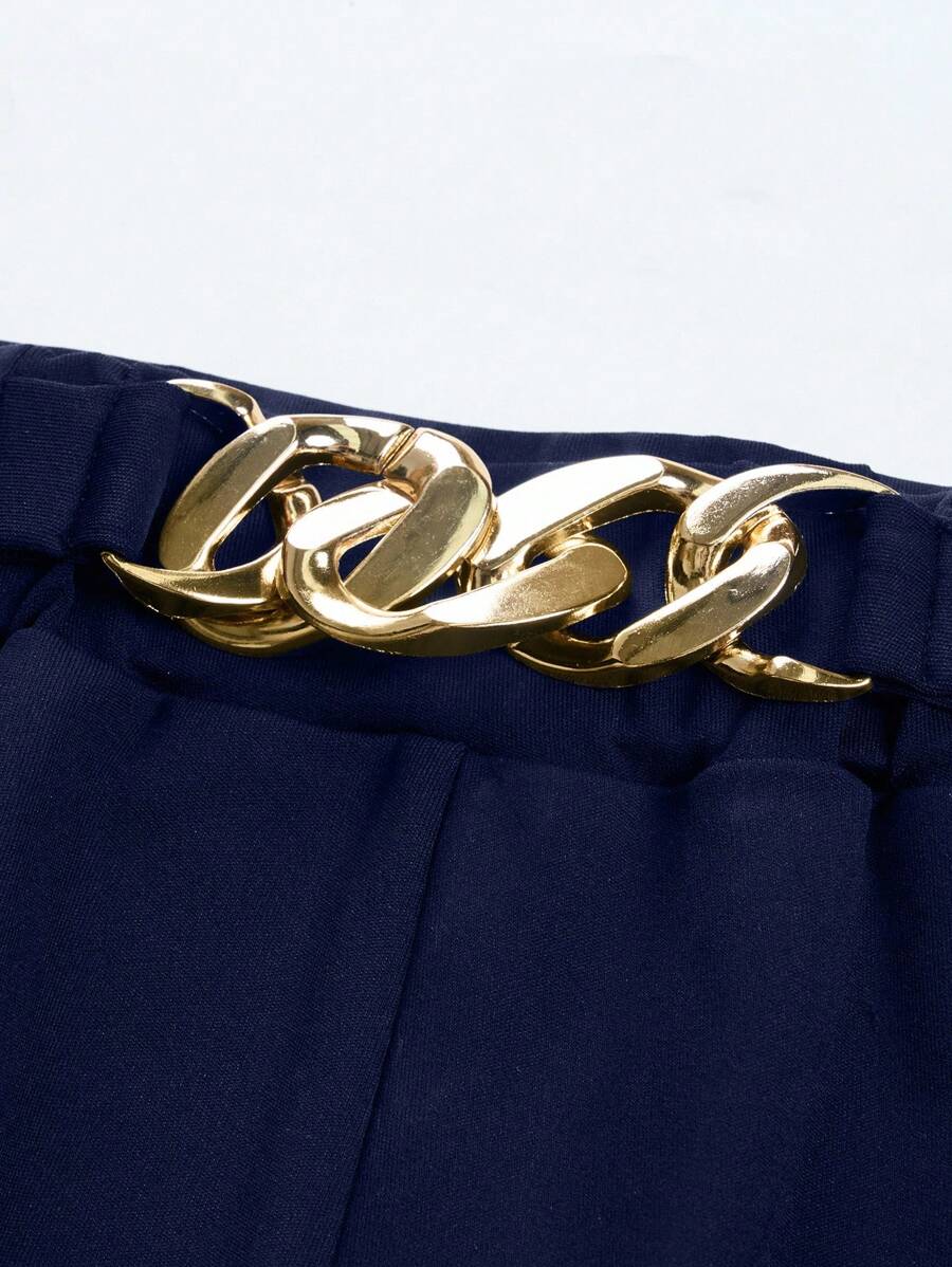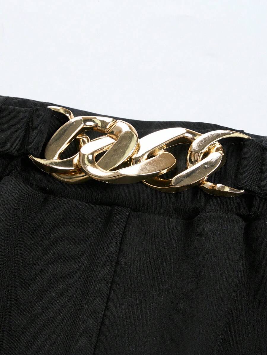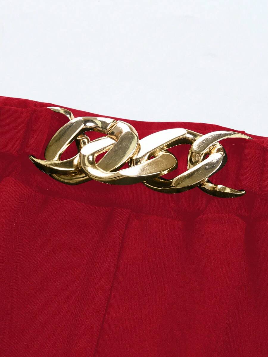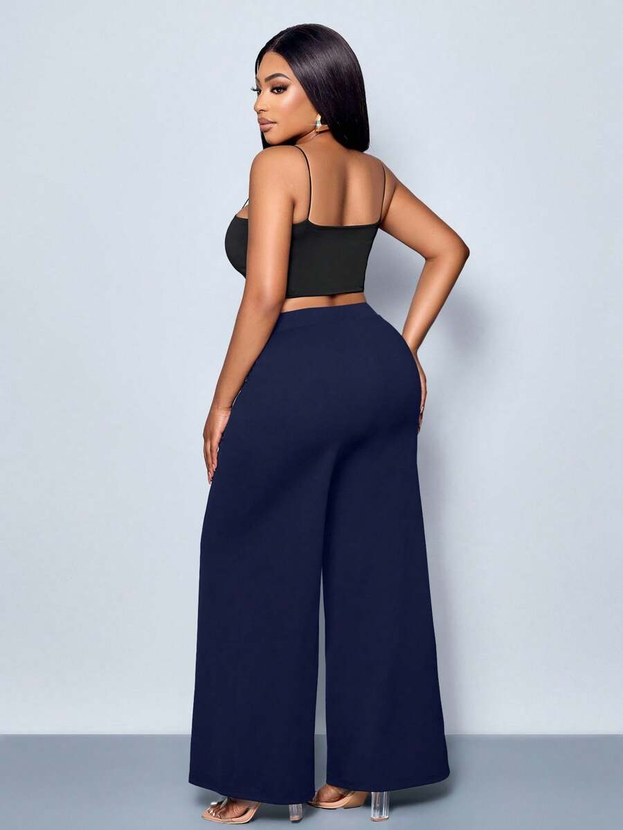 PETITE Plus Size Women's Solid Color Belt Metal Buckle Detail Wide Leg Pants, Tall Pants, Four Seasons Style, Party, Concert, Commuting Daily Style, Music Festival, Romance, Valentine's Day, Vacation, Spring And Summer Loose Pants