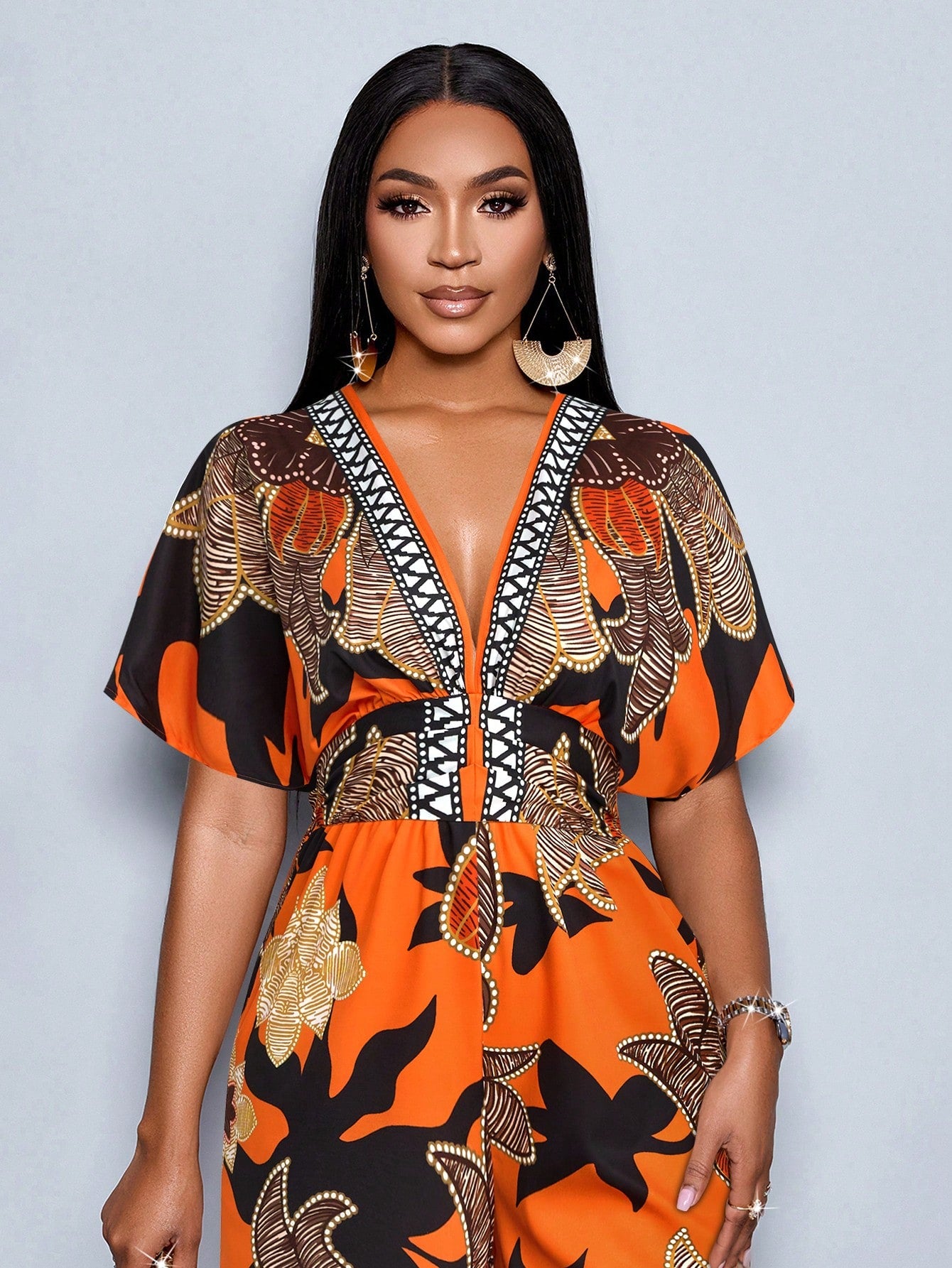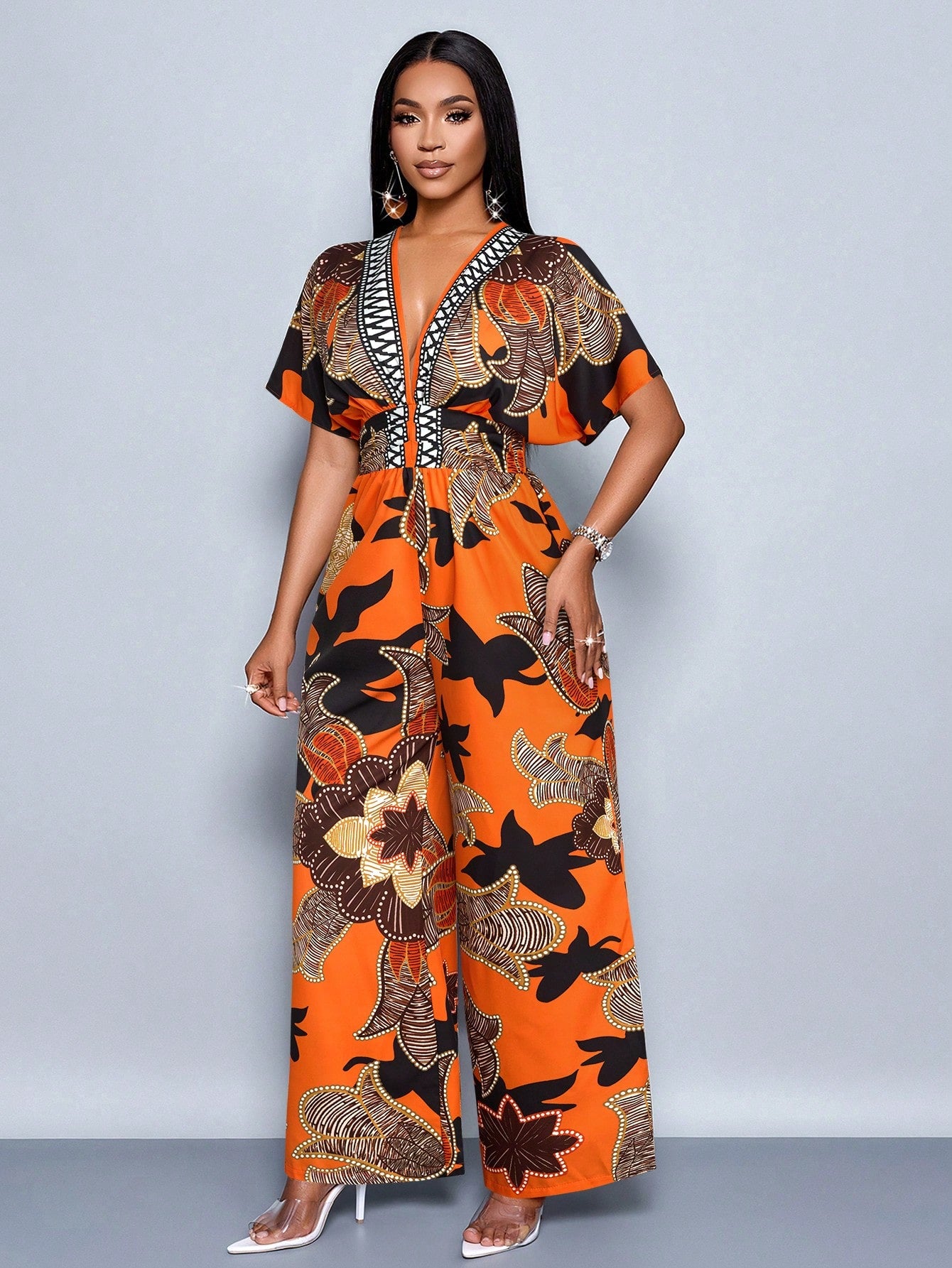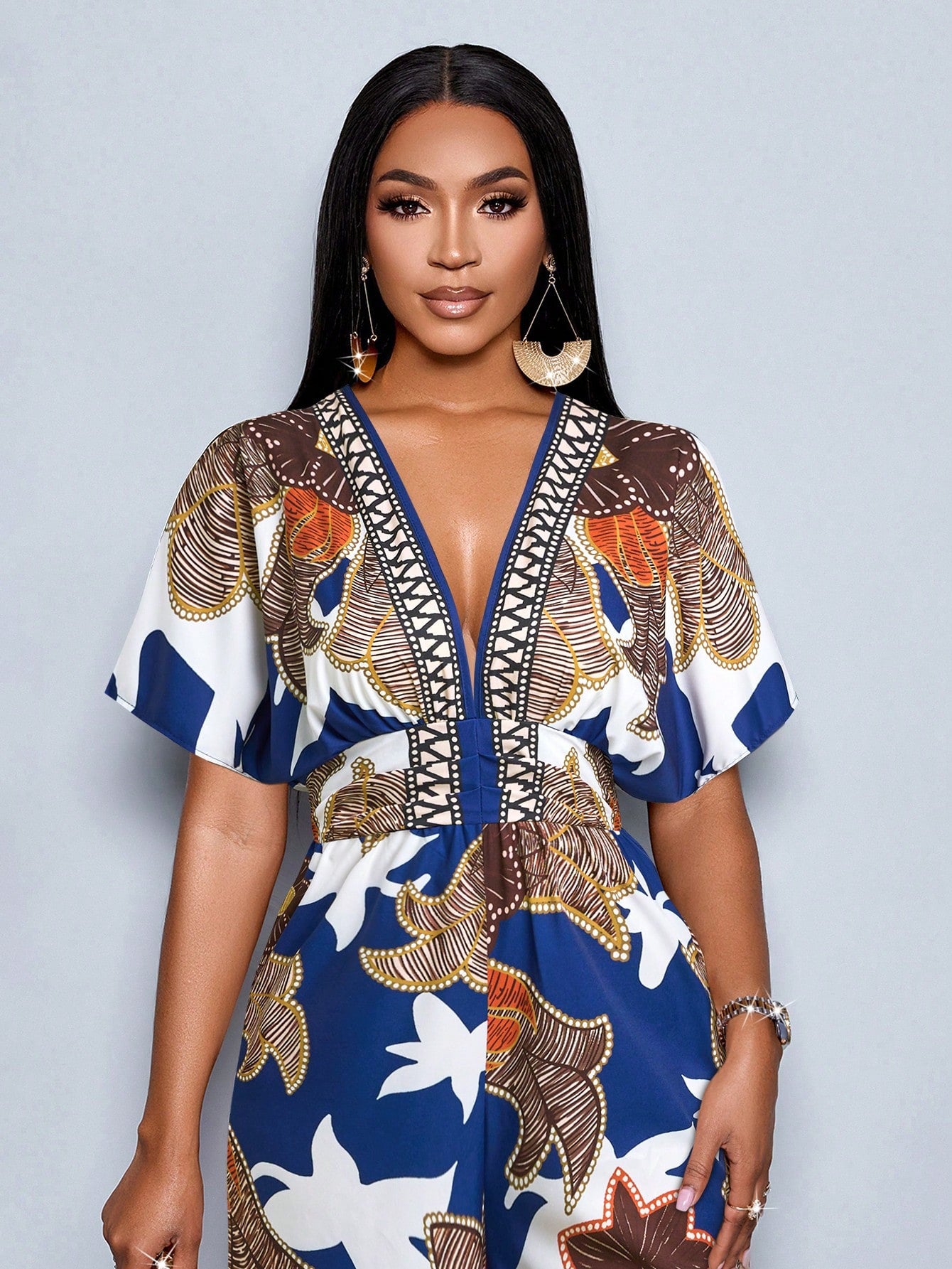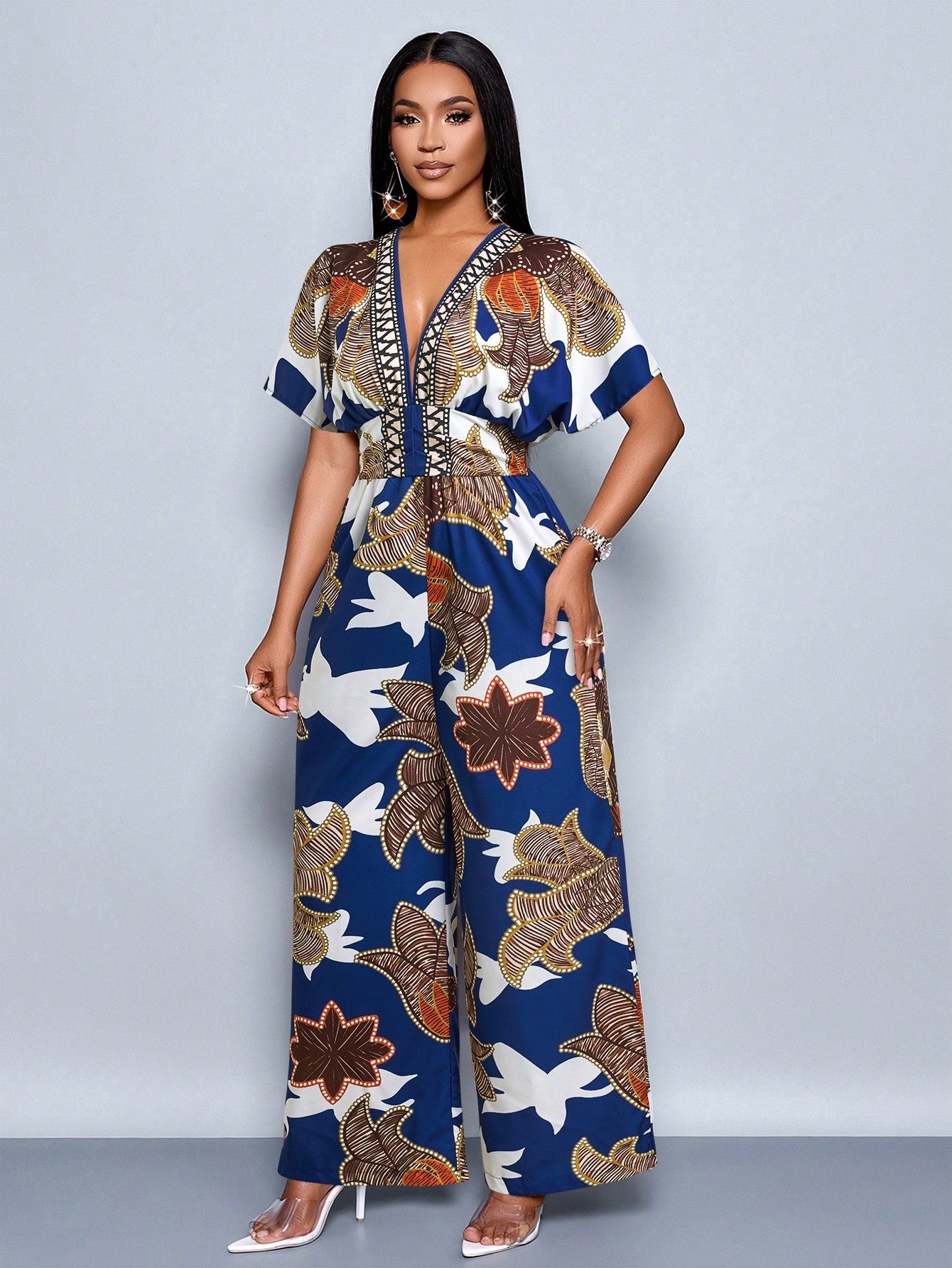SOLERSUN Women's Chain Print Batwing Sleeve Jumpsuit, Summer