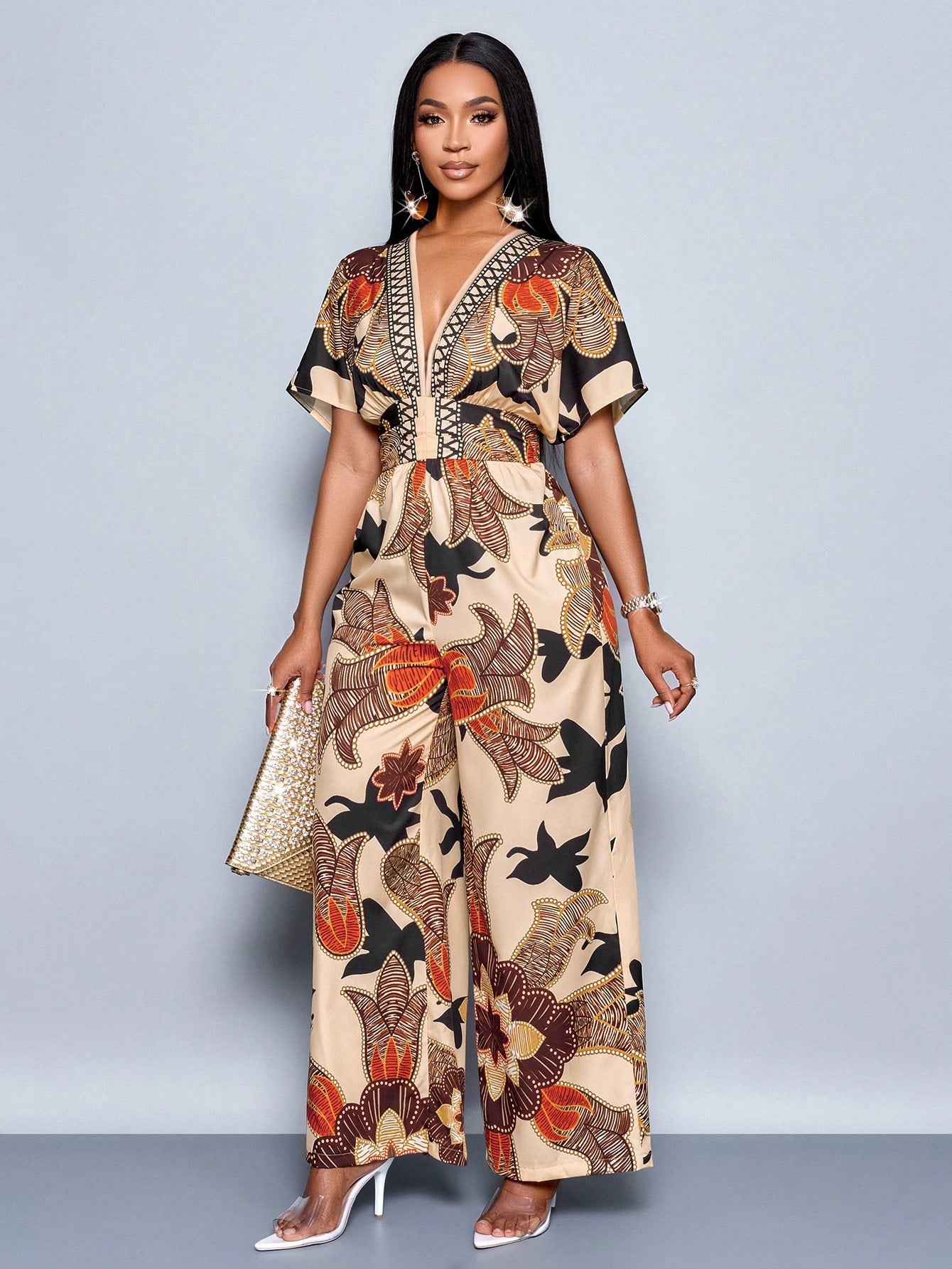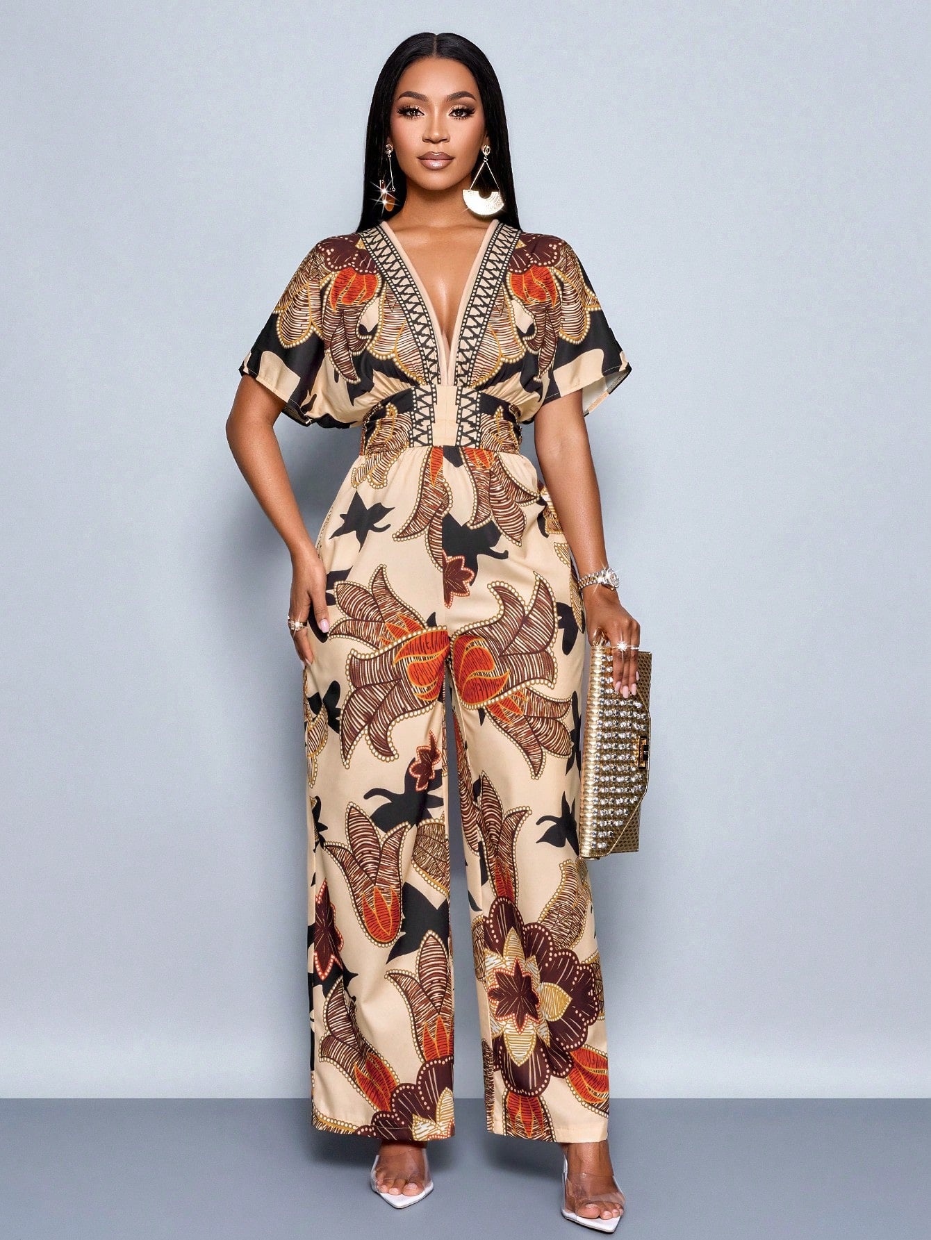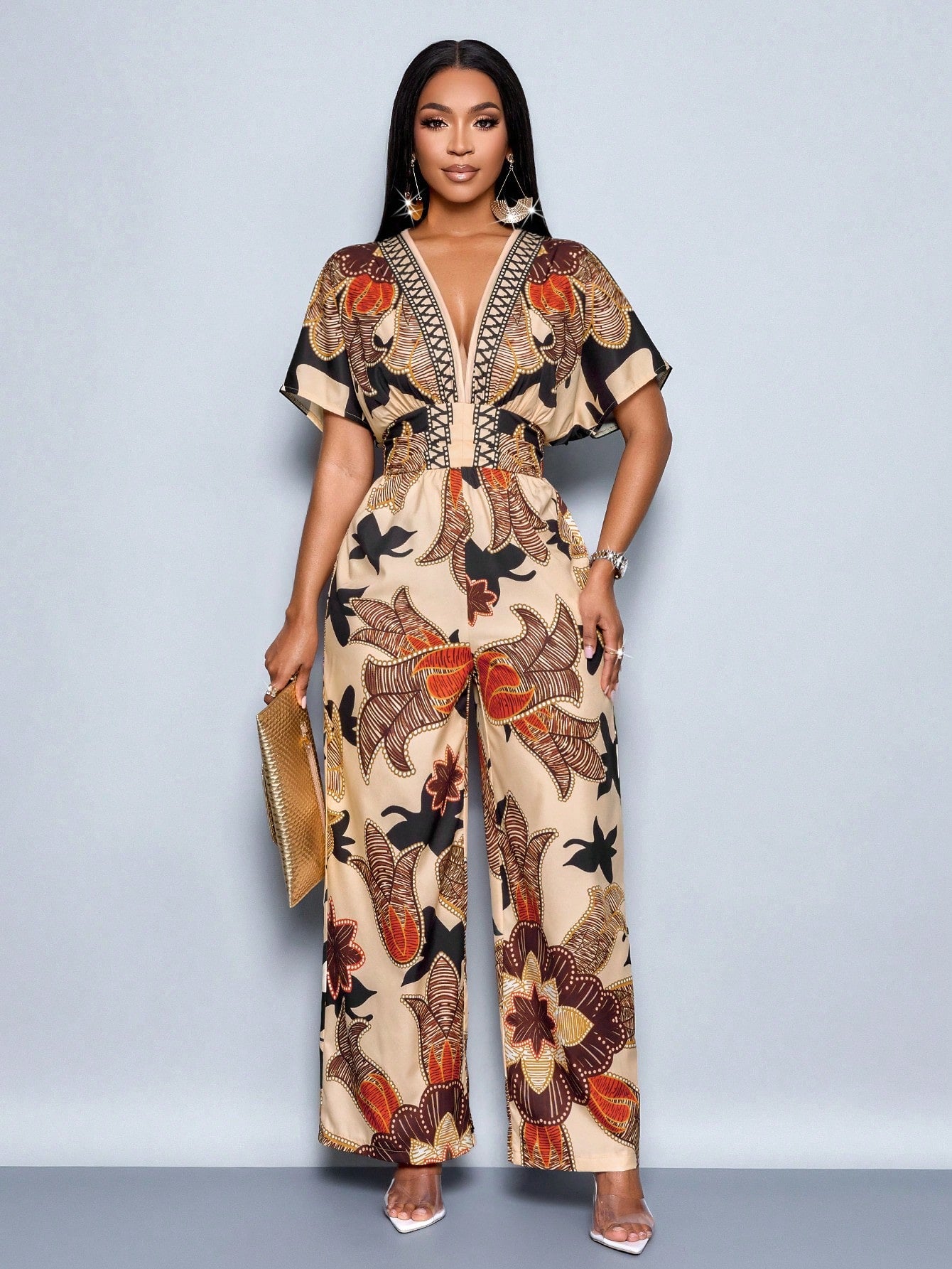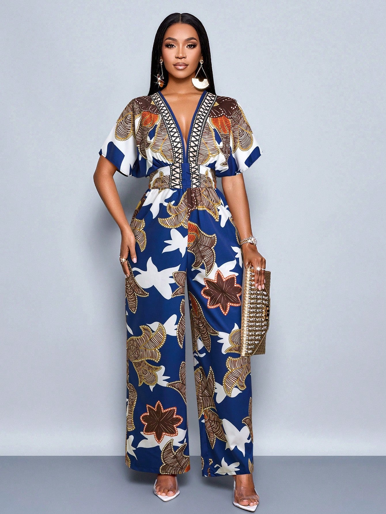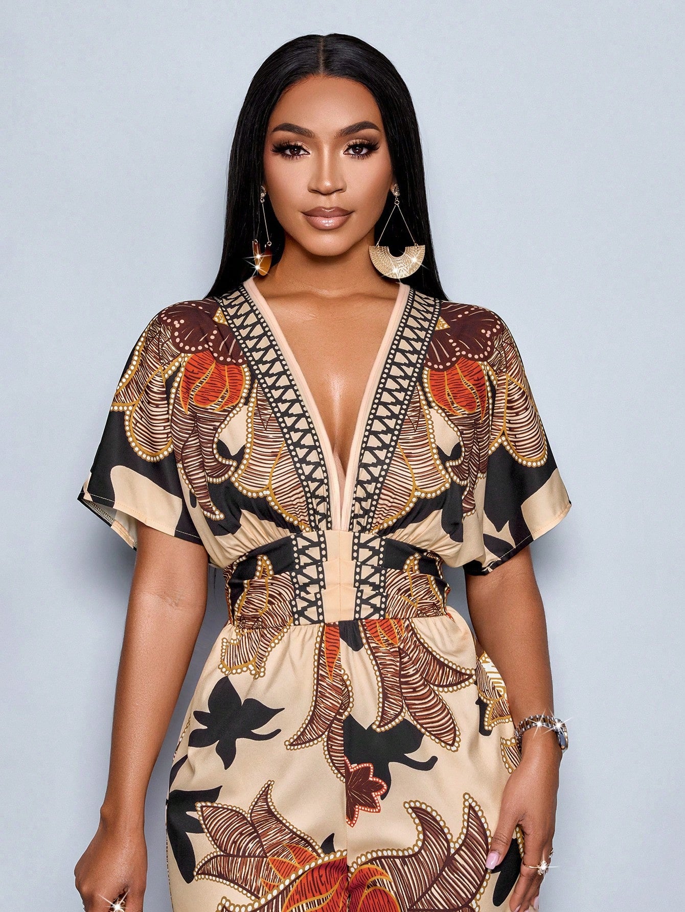 SOLERSUN Women's Chain Print Batwing Sleeve Jumpsuit, Summer