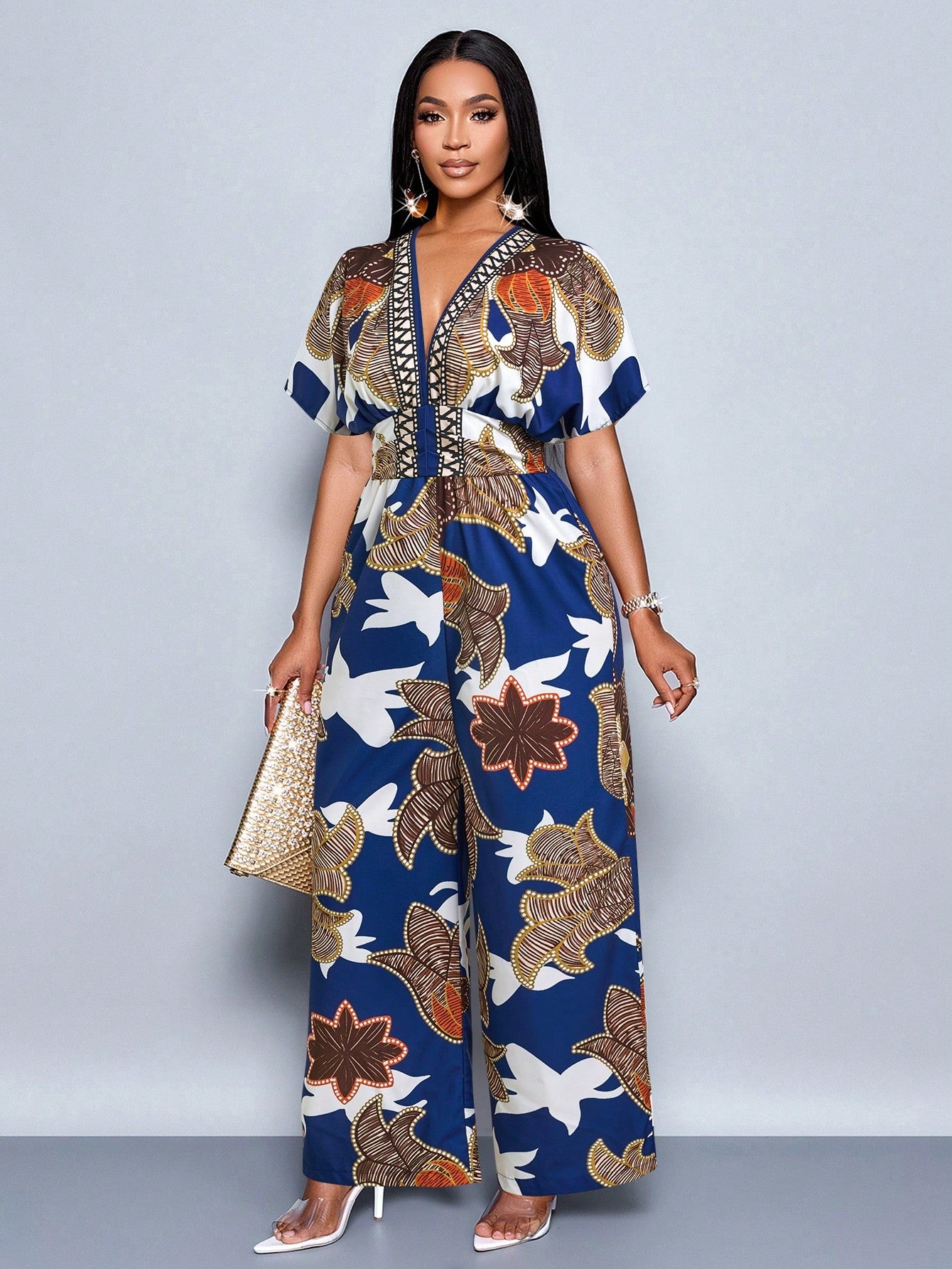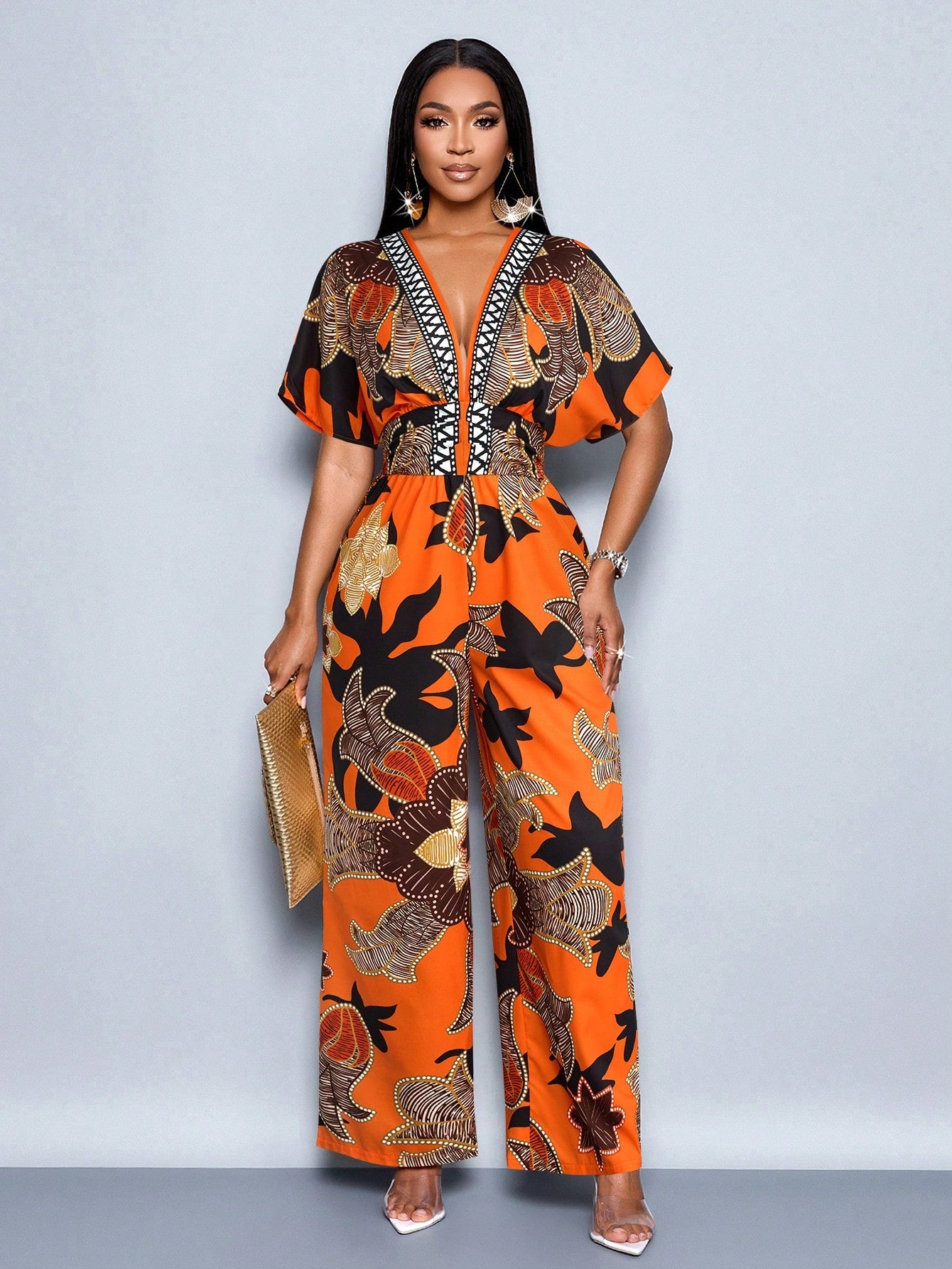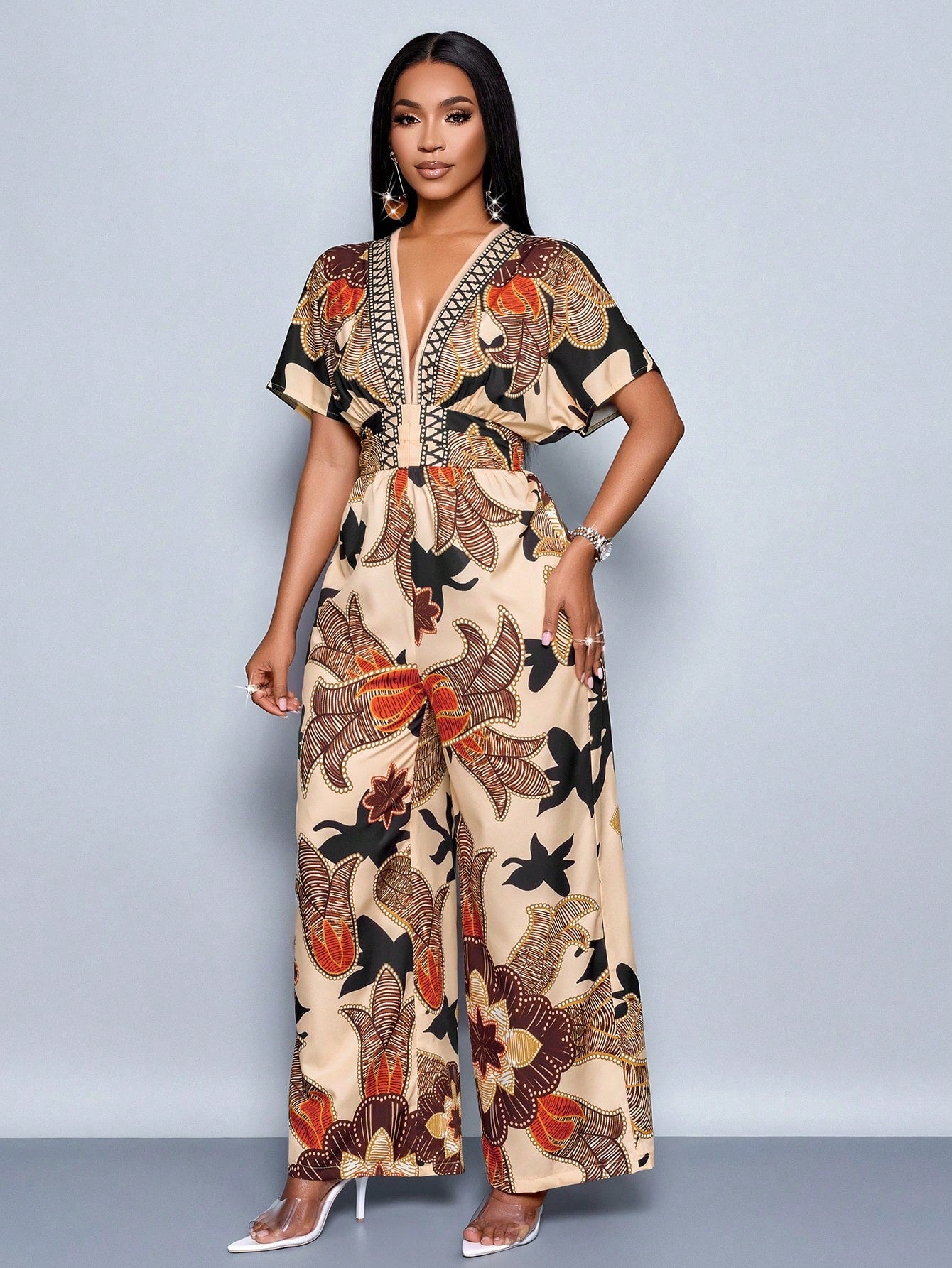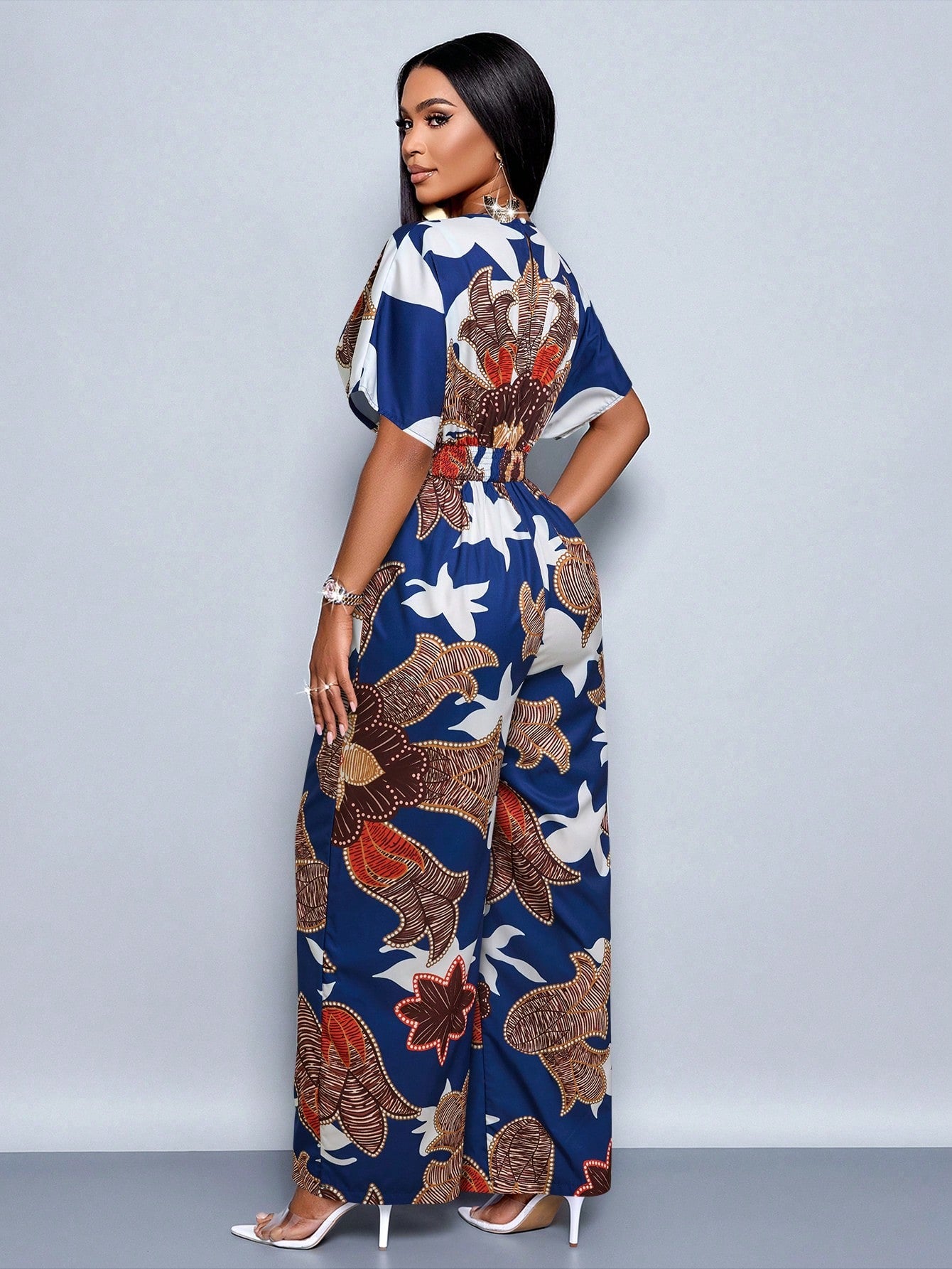 SOLERSUN Women's Chain Print Batwing Sleeve Jumpsuit, Summer