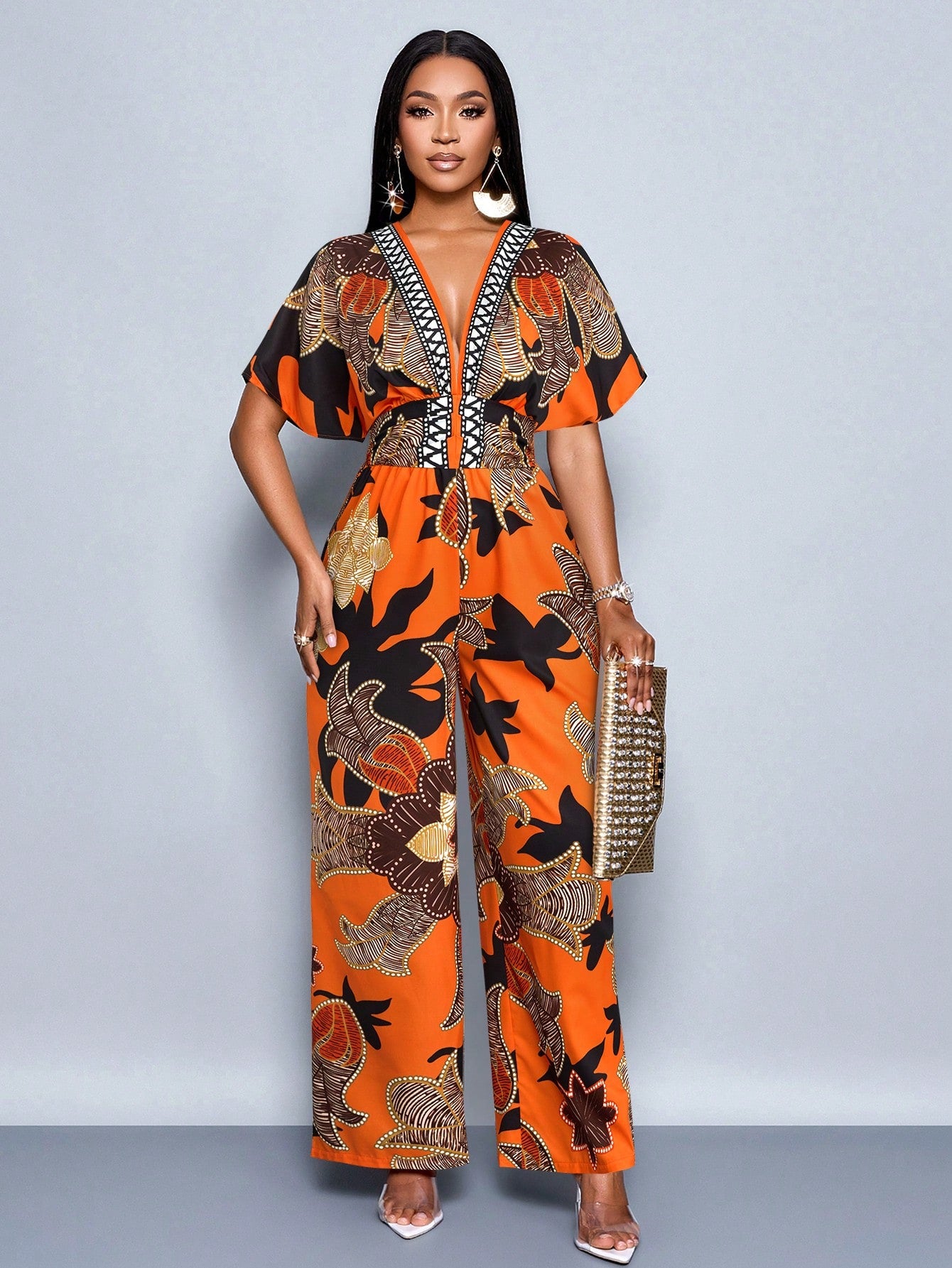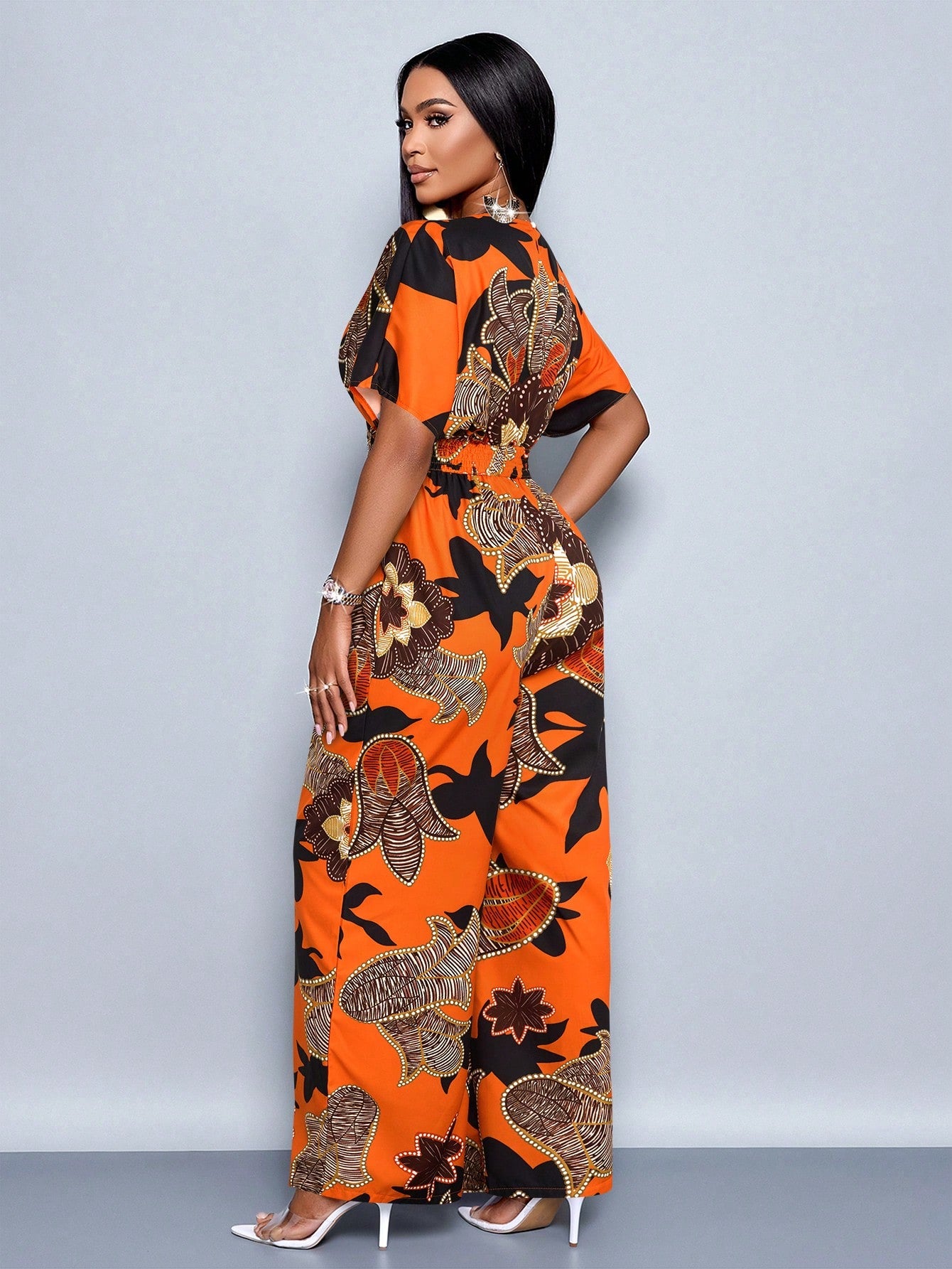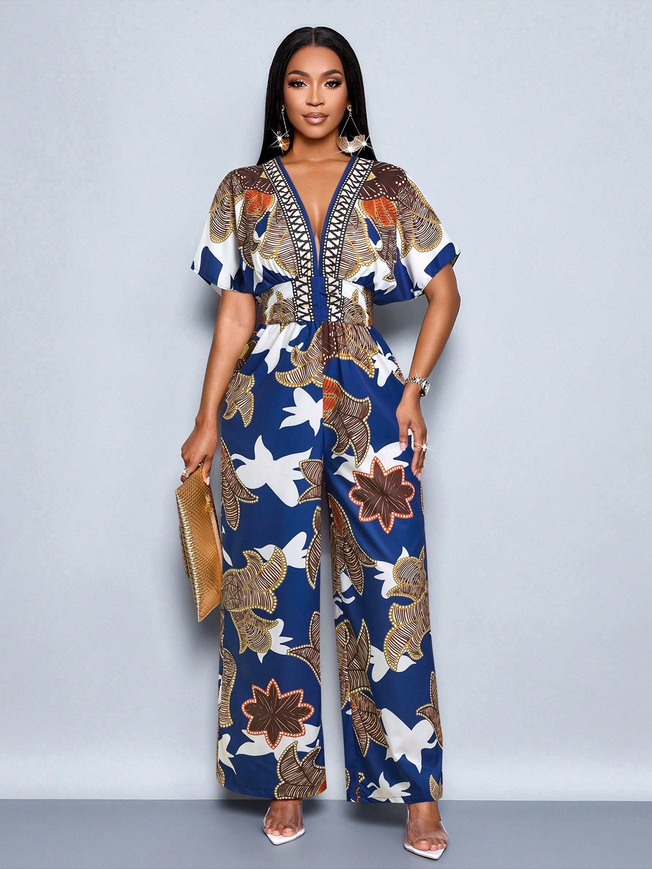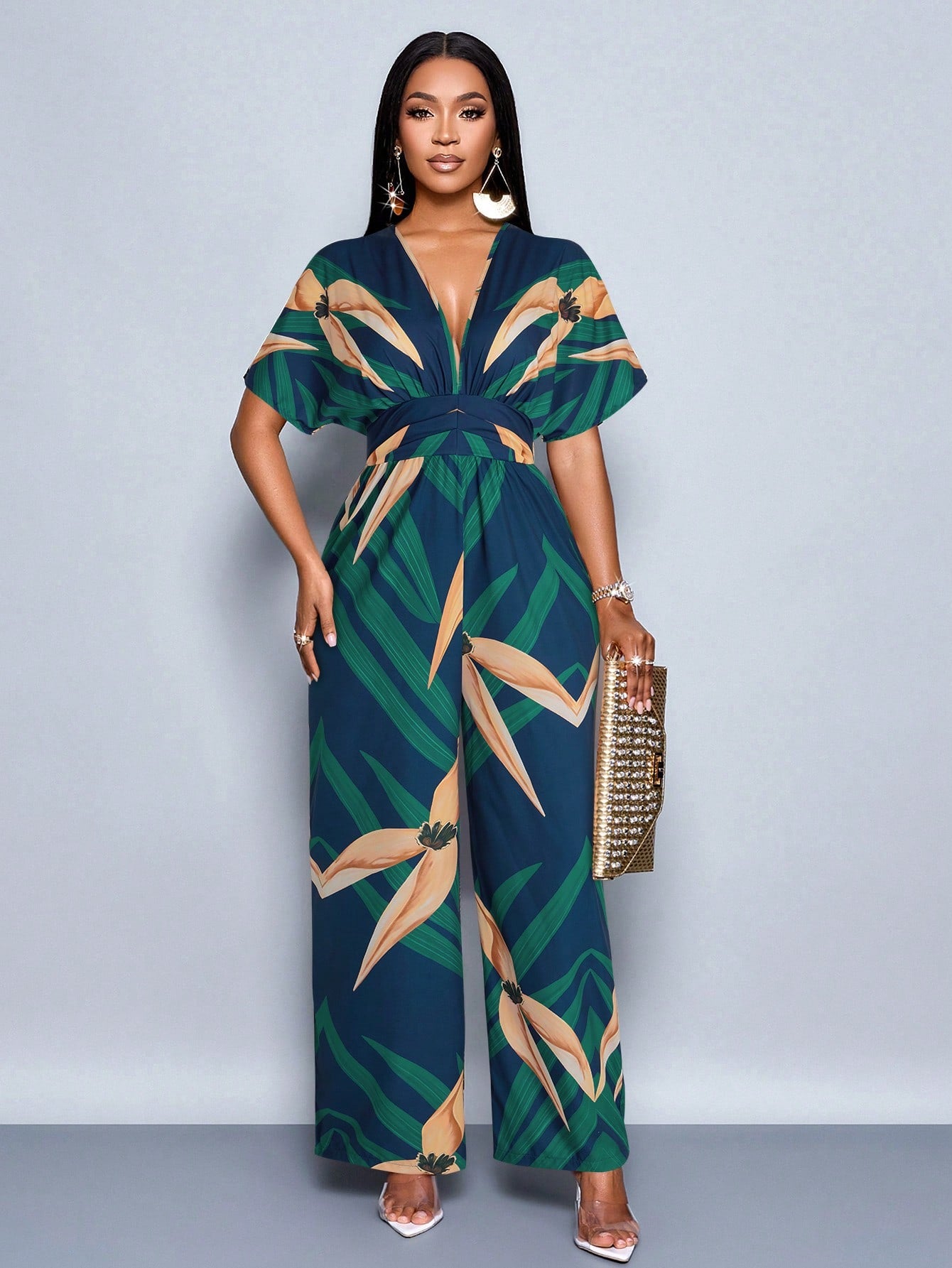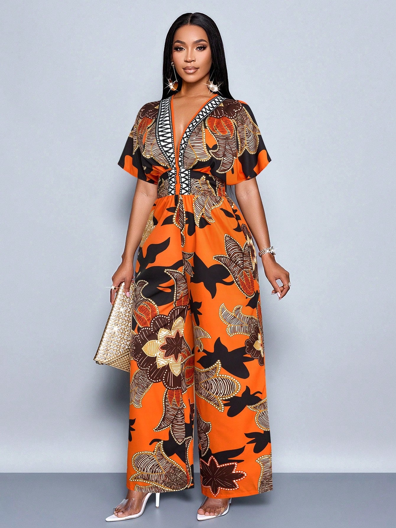 SOLERSUN Women's Chain Print Batwing Sleeve Jumpsuit, Summer