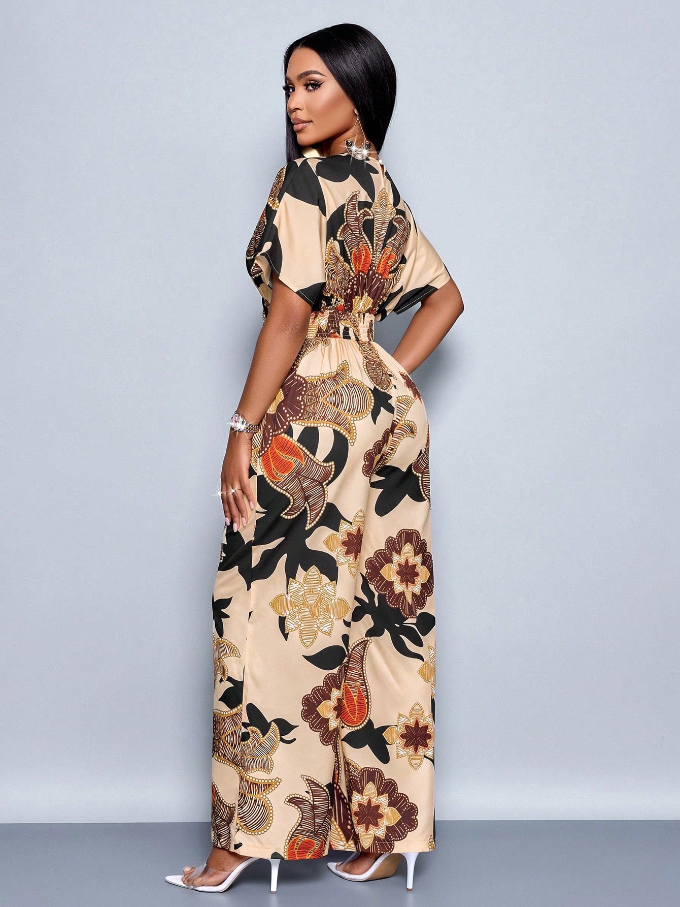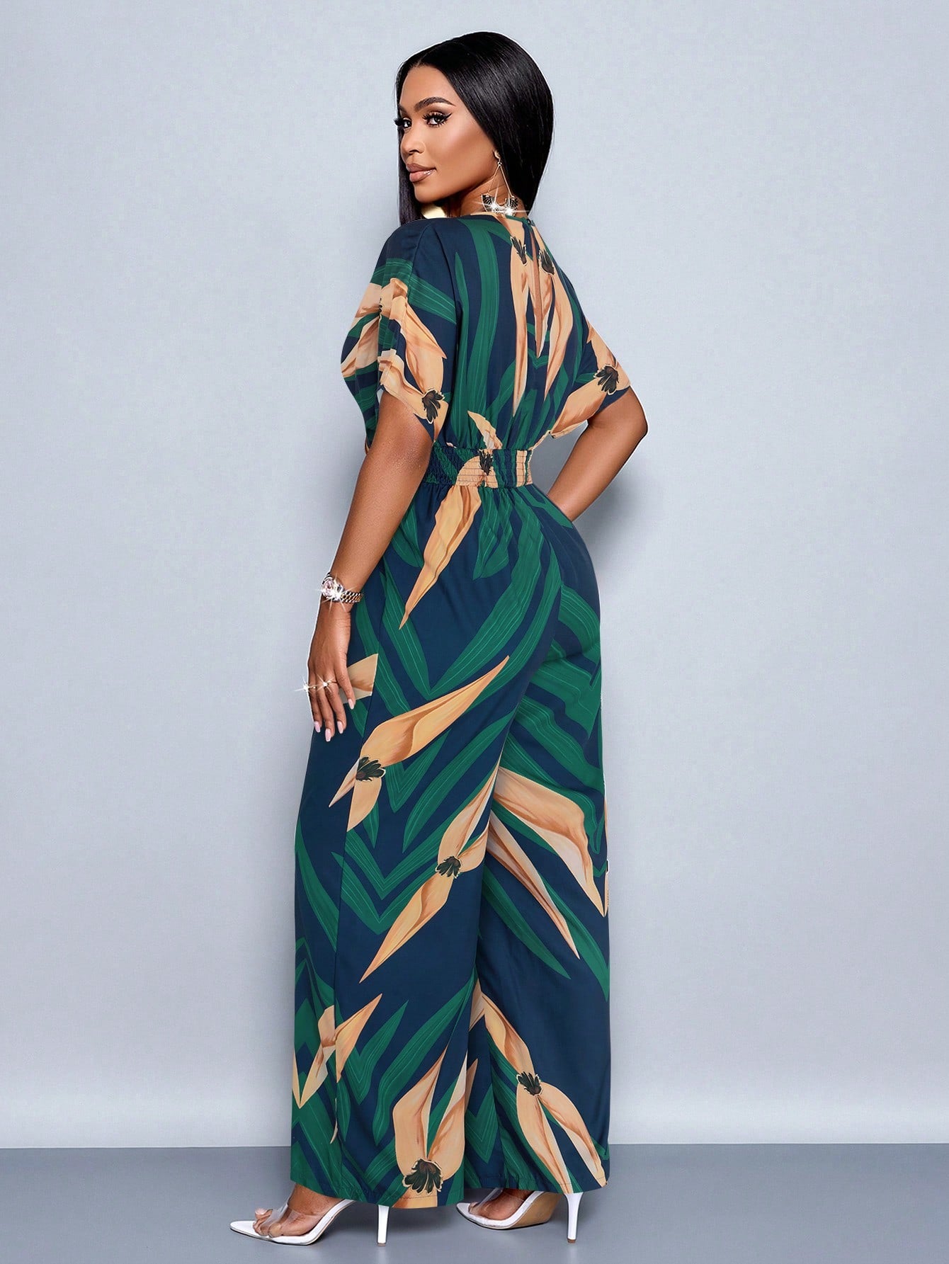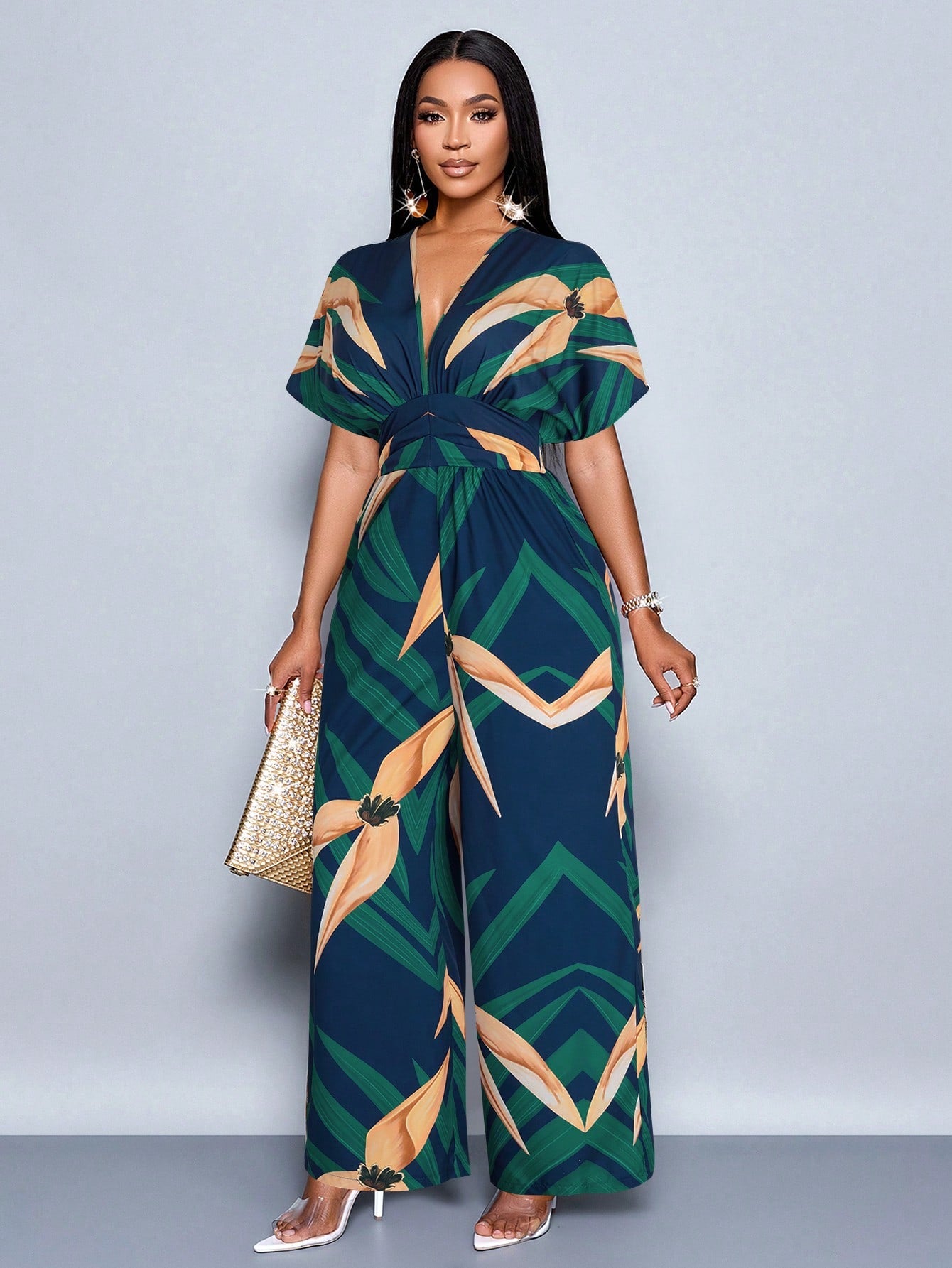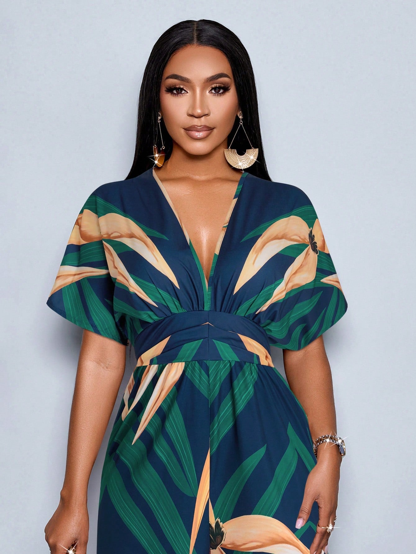 SOLERSUN Women's Chain Print Batwing Sleeve Jumpsuit, Summer