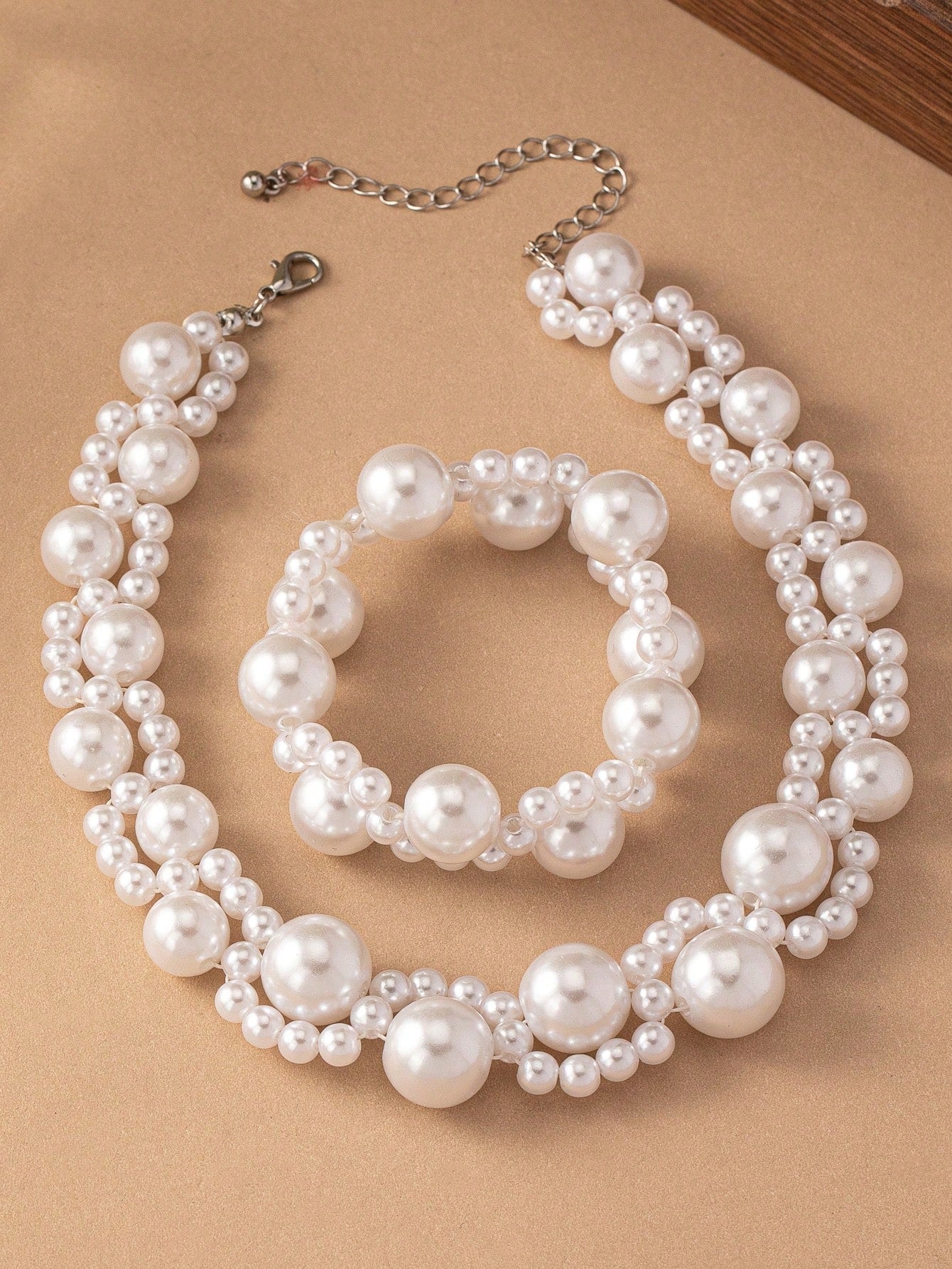 1pc Elegant Pearl Necklace And Bracelet Set Suitable For Women To Wear On Wedding Season, Party, Mother's Day As Gift To Mom.