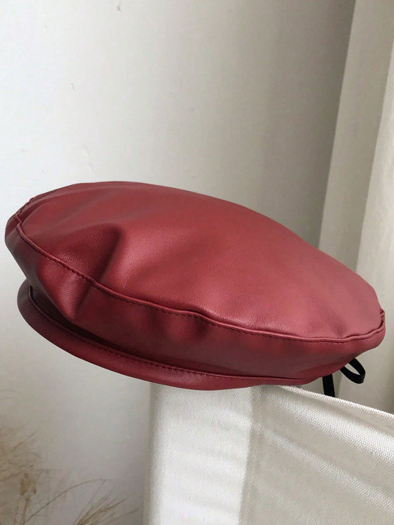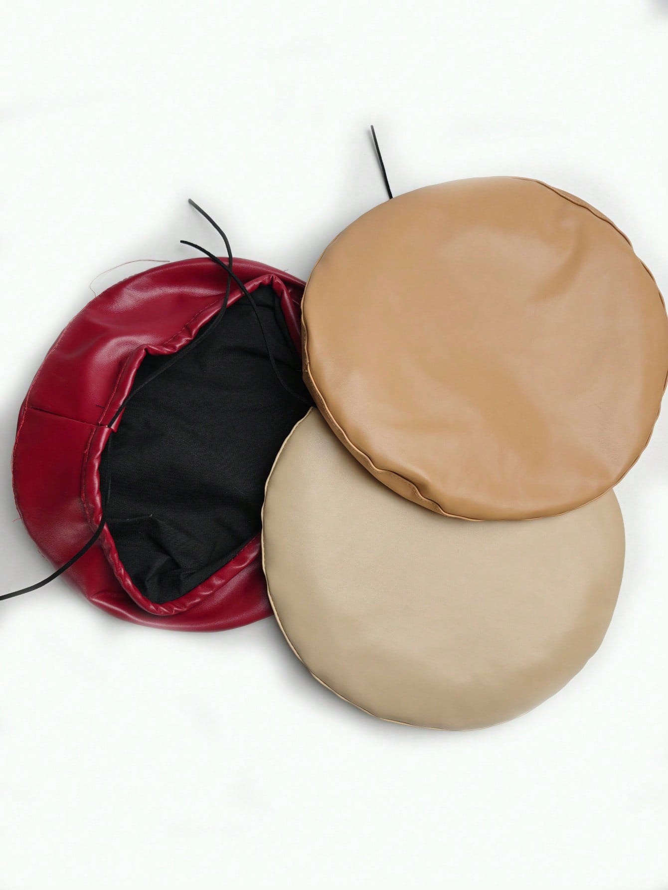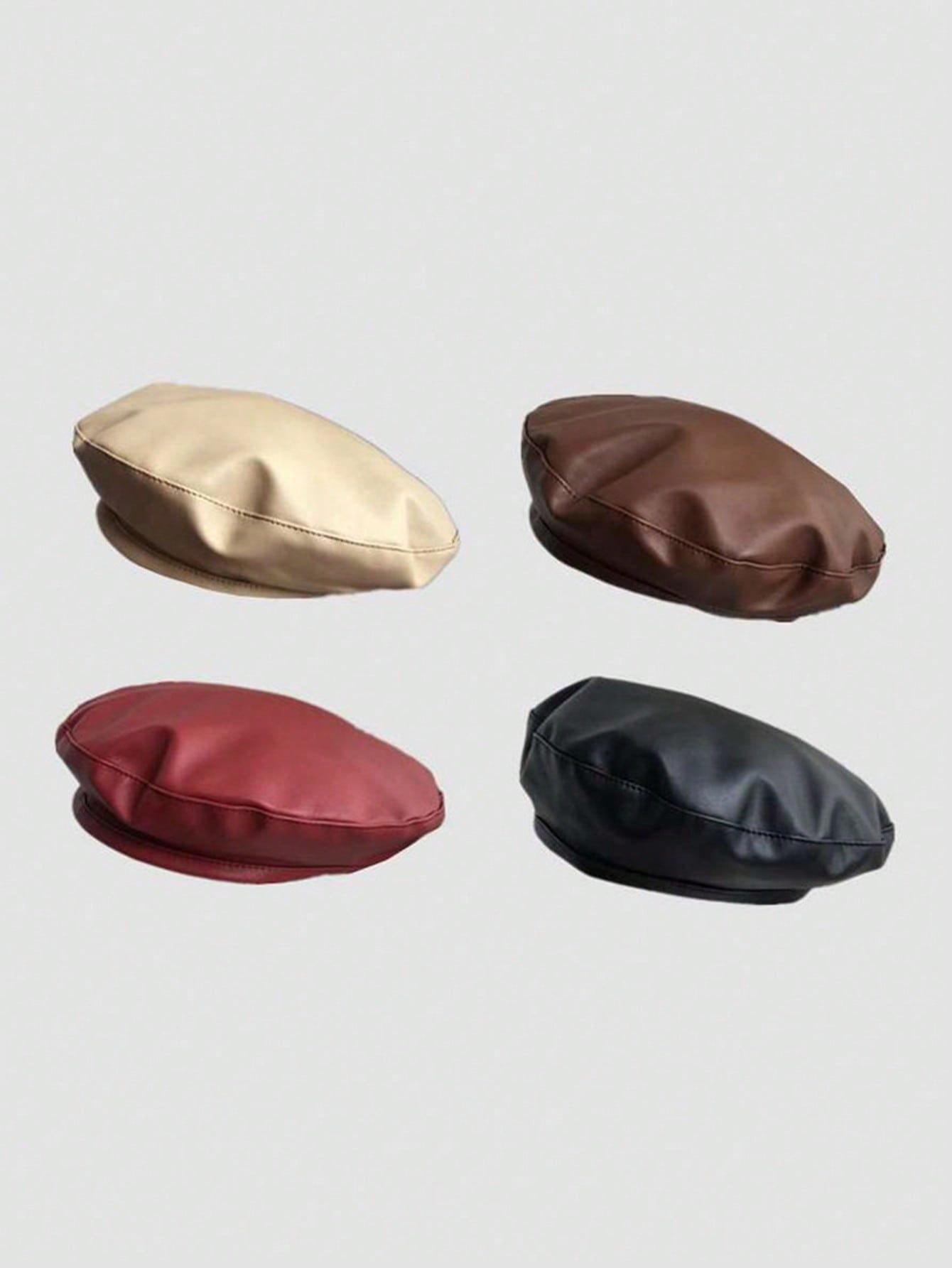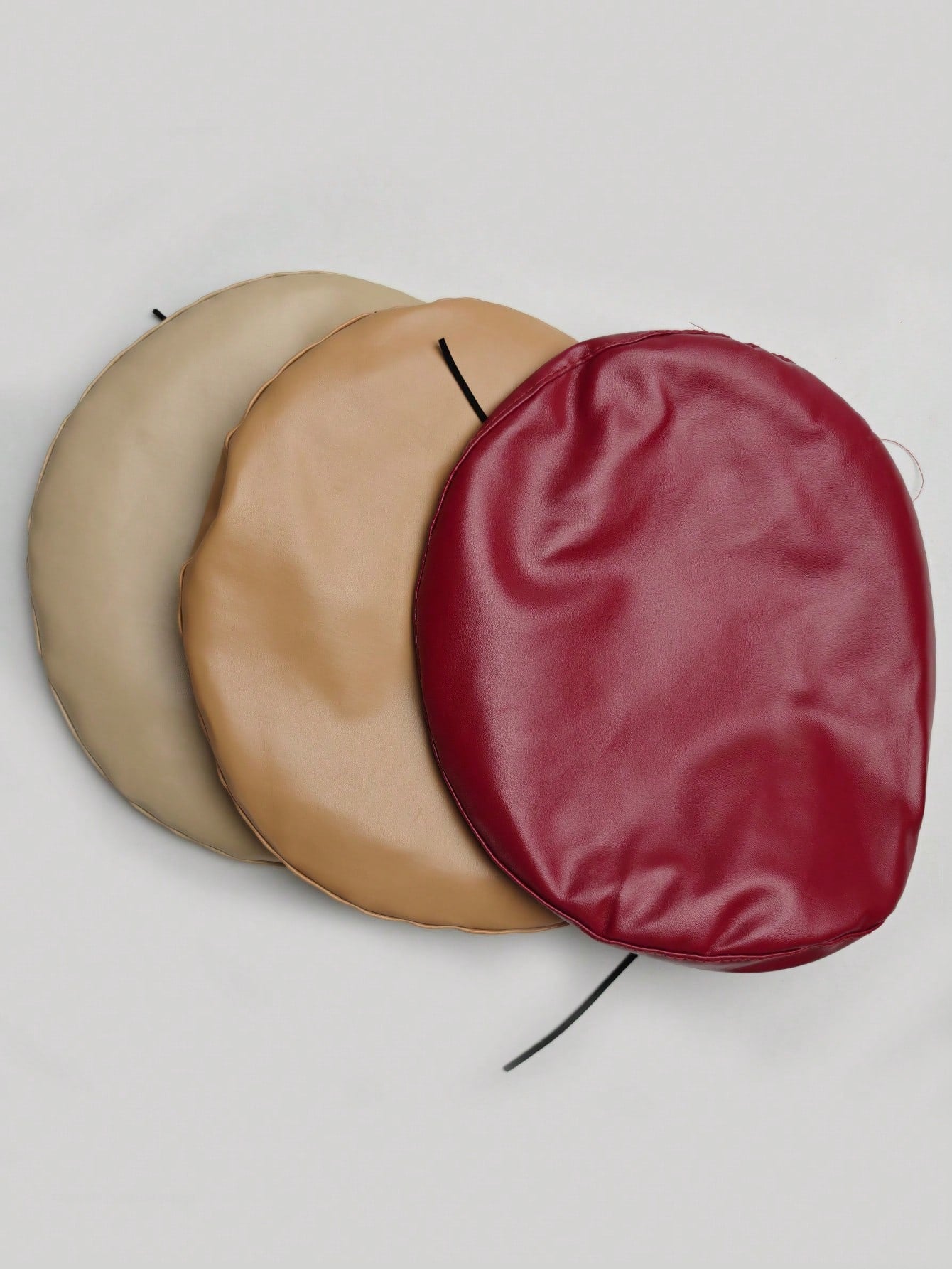 1pc Women's Black Flat Beret Hat, Versatile PU Painter Beret Cap, Pumpkin Shaped, Autumn/Winter